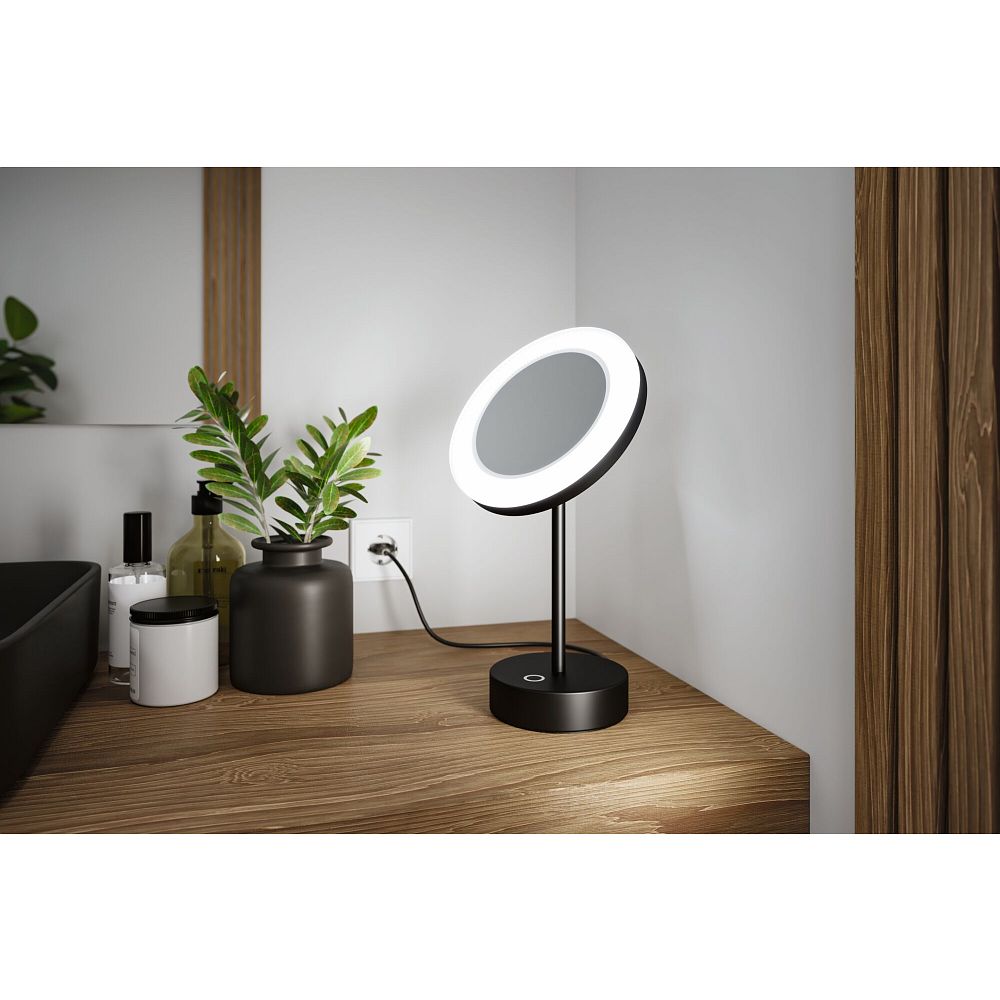 mirror with lighting MASUA IP44 - 3X ZOOM 3-fold, round, CCT Switch, with plug, adjustable IP44 / IP20, black matt
