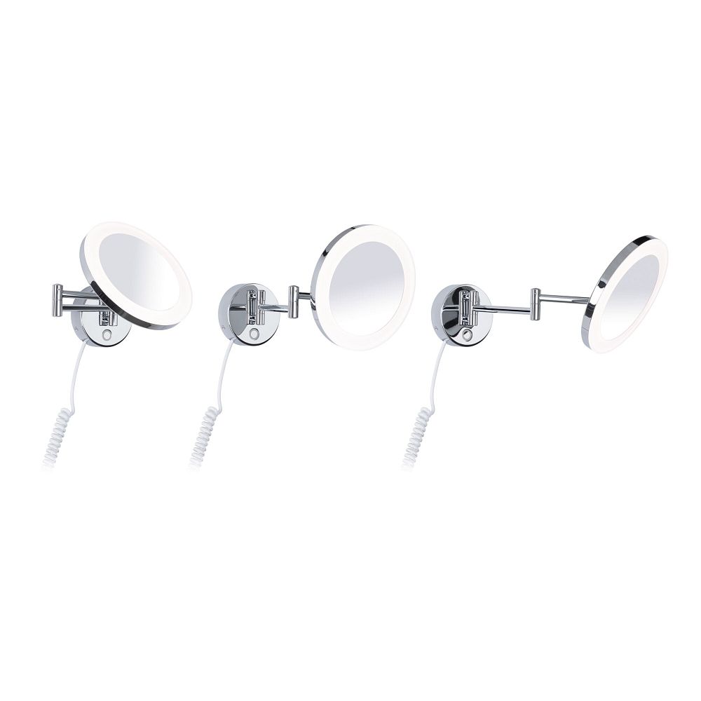mirror with lighting MASUA IP44 - 3X ZOOM 3-fold, round, with flex arm, CCT Switch, tiltable IP44 / IP20, chrome