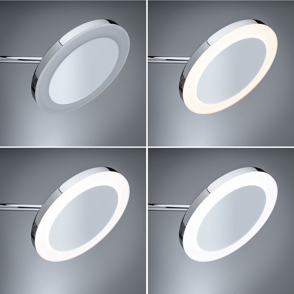 The MASUA LED cosmetic mirror by Paulmann impresses with its high-quality workmanship and versatile functionality. With a mirror diameter of 20 cm and overall dimensions of 20 x 21.3 x 38.5 cm, it is compact and space-saving. The product is made of durable plastic and metal in an elegant chrome design that harmoniously fits into various interior styles. Thanks to the 3x magnifying mirror and the surrounding LED strip under the diffuser cover, the mirror offers optimal visibility and detail accuracy for makeup and skincare.