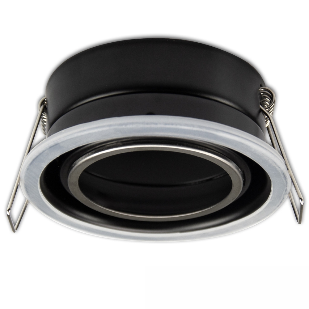 The Sys-68 recessed frame from ISOLED is specially designed for MR16 and PAR16 light bulbs with GU10 base. It impresses with its round design and robust construction made of high-quality aluminum in elegant black. With a diameter of 8.3 cm and a recessed depth of 3.5 cm, this recessed frame offers optimal dimensions for easy integration into ceilings and walls. Installation is done by recessed mounting, allowing for a clean and unobtrusive setup.
