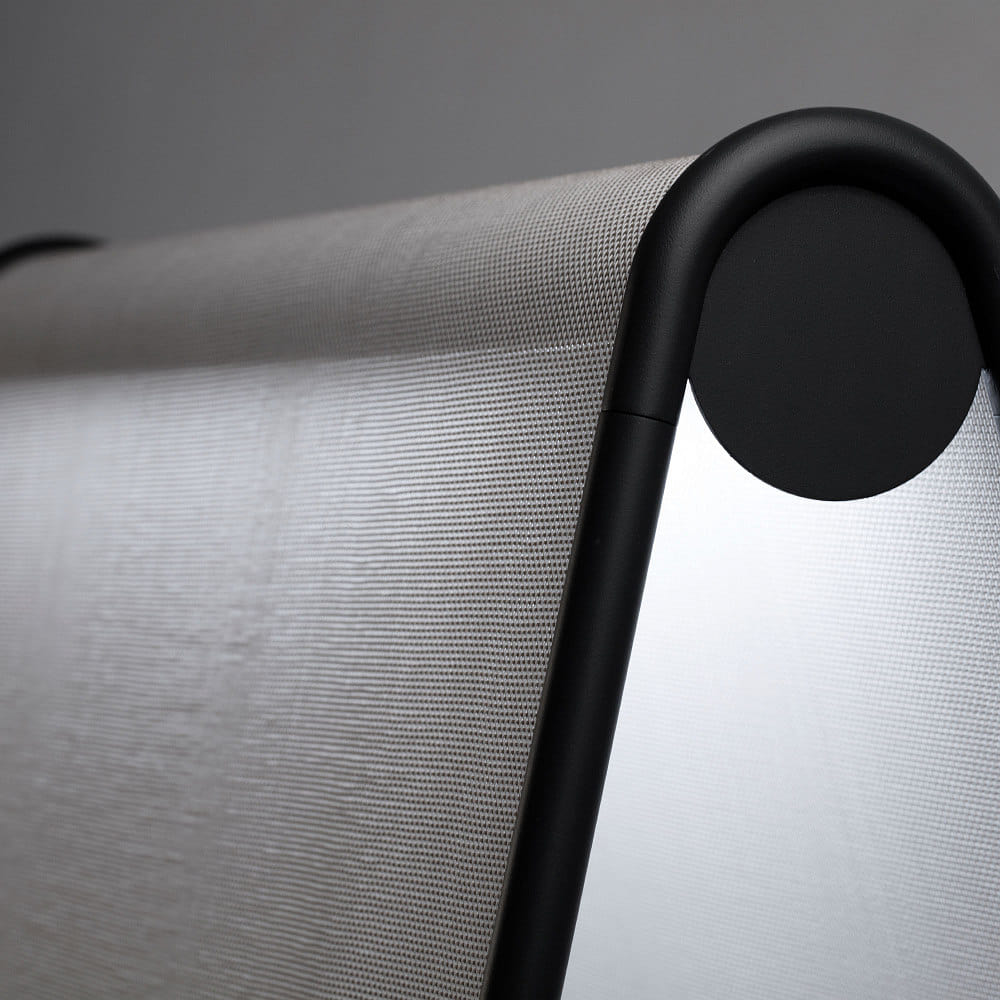 The CADAQUÉS floor lamp is made of high-quality aluminum, polycarbonate, and textile, making it particularly robust and durable. With a protection class of 2 and an IP44 protection rating, it is ideal for outdoor use.