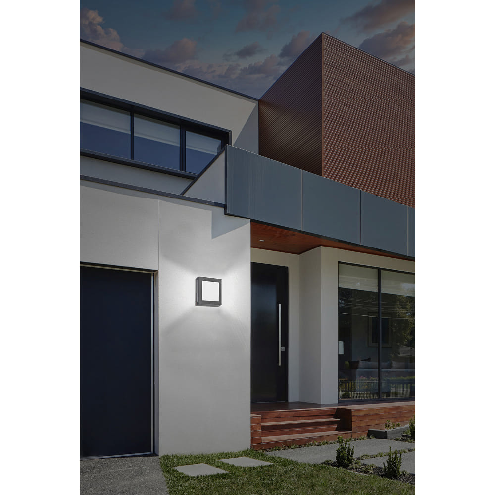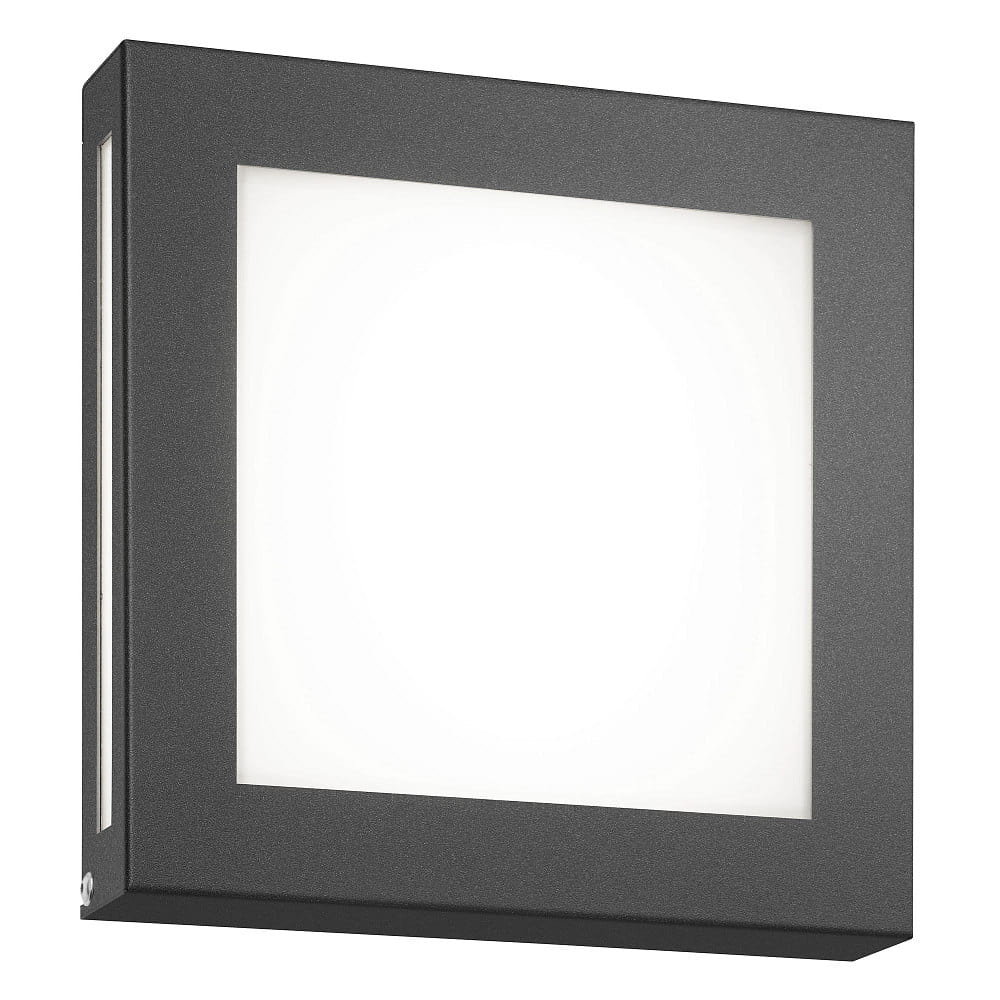 Outdoor LED wall luminaire 22 x 22cm with motion detector, IP44, 12W 3000K, stainless steel / opal glass, anthracite