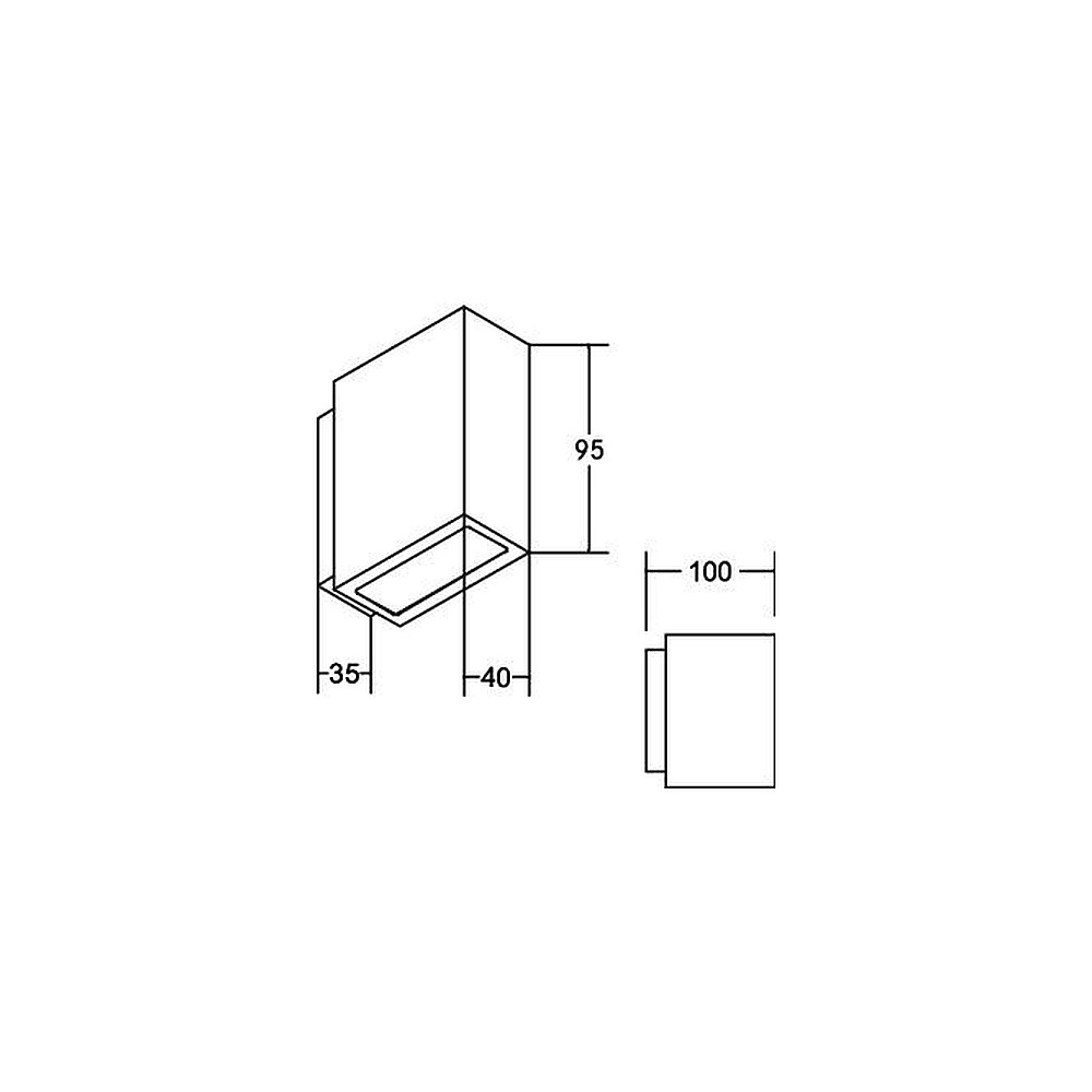 The outdoor wall light has dimensions of L/W: 9.5/4 cm and has a square shape. It features a total of 2 light sources with a color temperature of 3000K. The color rendering level is 1B and the light has a beam angle of 60°. With the ability to replace the LED light sources, the wall light is a durable and energy-efficient solution for outdoor use.