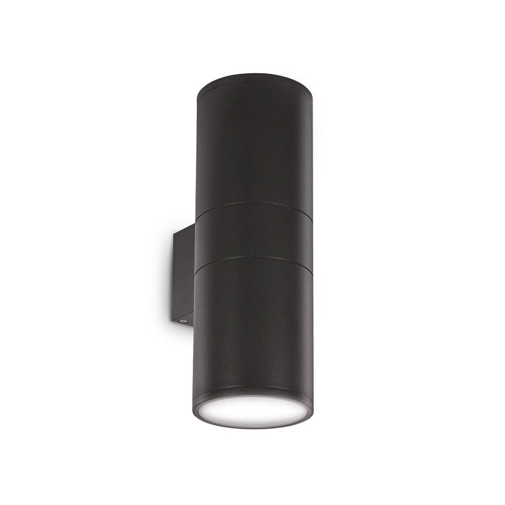 The outdoor wall light GUN AP2 BIG is specifically designed for outdoor use. The black metal housing gives the light a modern and timeless design that fits various interior styles. The surface mounting allows for easy and quick installation on the wall.