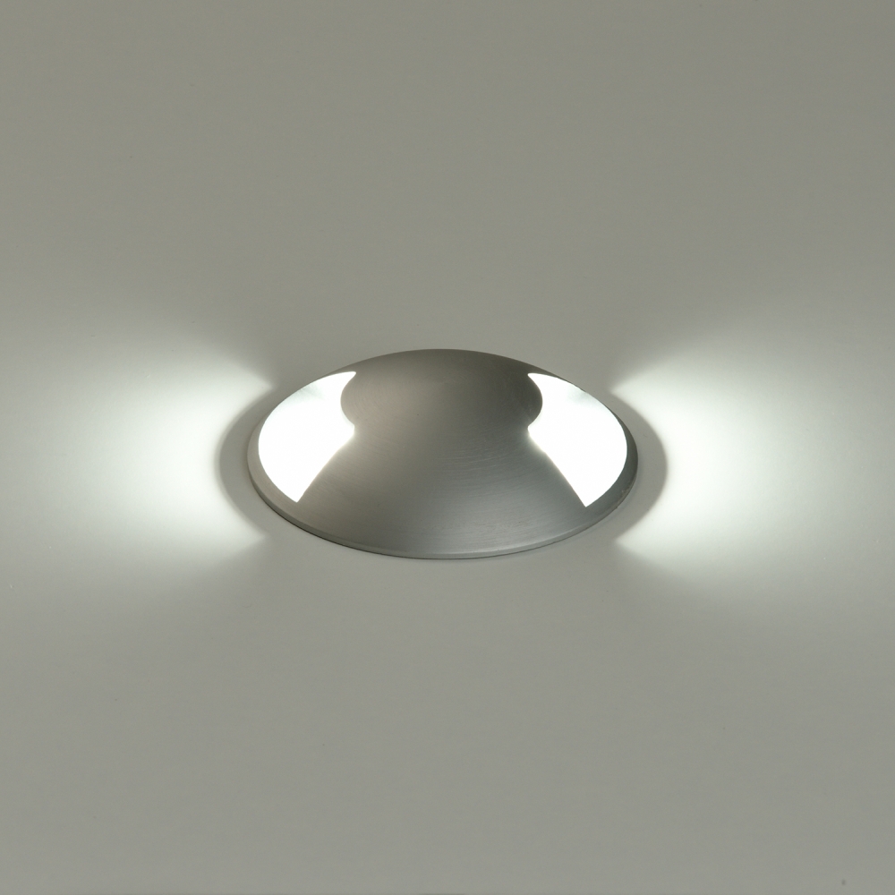 The recessed floor spotlight INDUS stands out for its two-sided light emission and features 1 x GU10 LED with 8W power. With protection class IP67 and impact resistance class IK08, this spotlight is particularly robust and durable. The elegant design in alu/silver harmoniously blends into any environment.