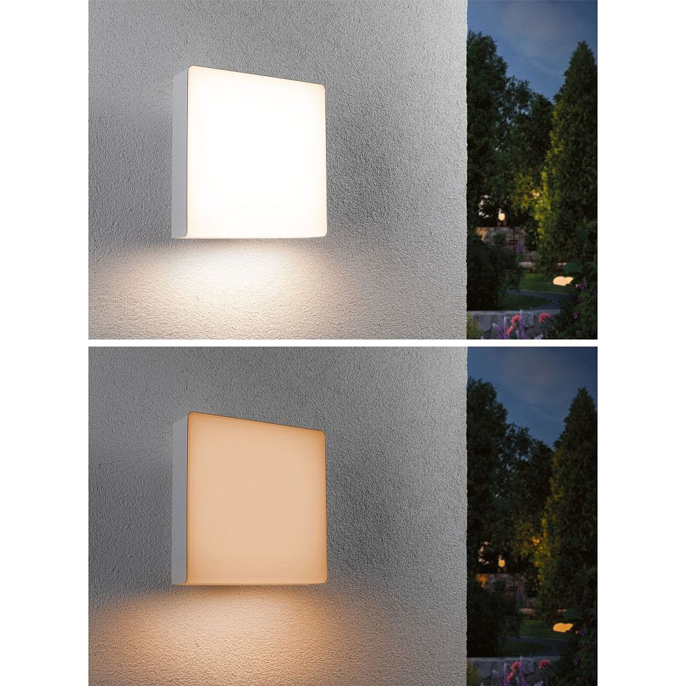 The LED Outdoor Wall Light AZALENA ZigBee from Paulmann is an innovative lighting solution for outdoor areas. With a power of 10W and a color temperature of 2200-3000K, it produces a pleasant warm white light with a luminous flux of 700lm. The light has a light sensor and is insect-friendly, making it ideal for outdoor use.