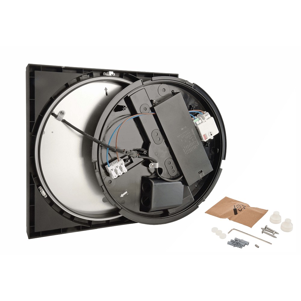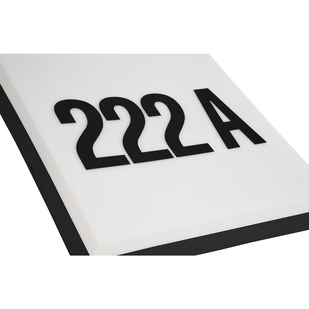 This outdoor wall light features an integrated daylight sensor that automatically switches the lighting on or off depending on the brightness. In addition, accessories such as mounting hardware, stickers with adhesive numbers and letters, and a driver are included to facilitate installation.