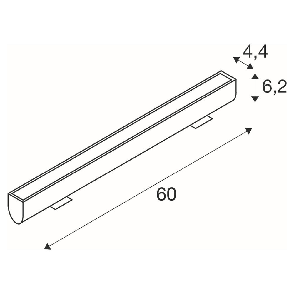 luminaire body-B∕ H∕ T: 60∕ 6,2∕ 4,4 cm