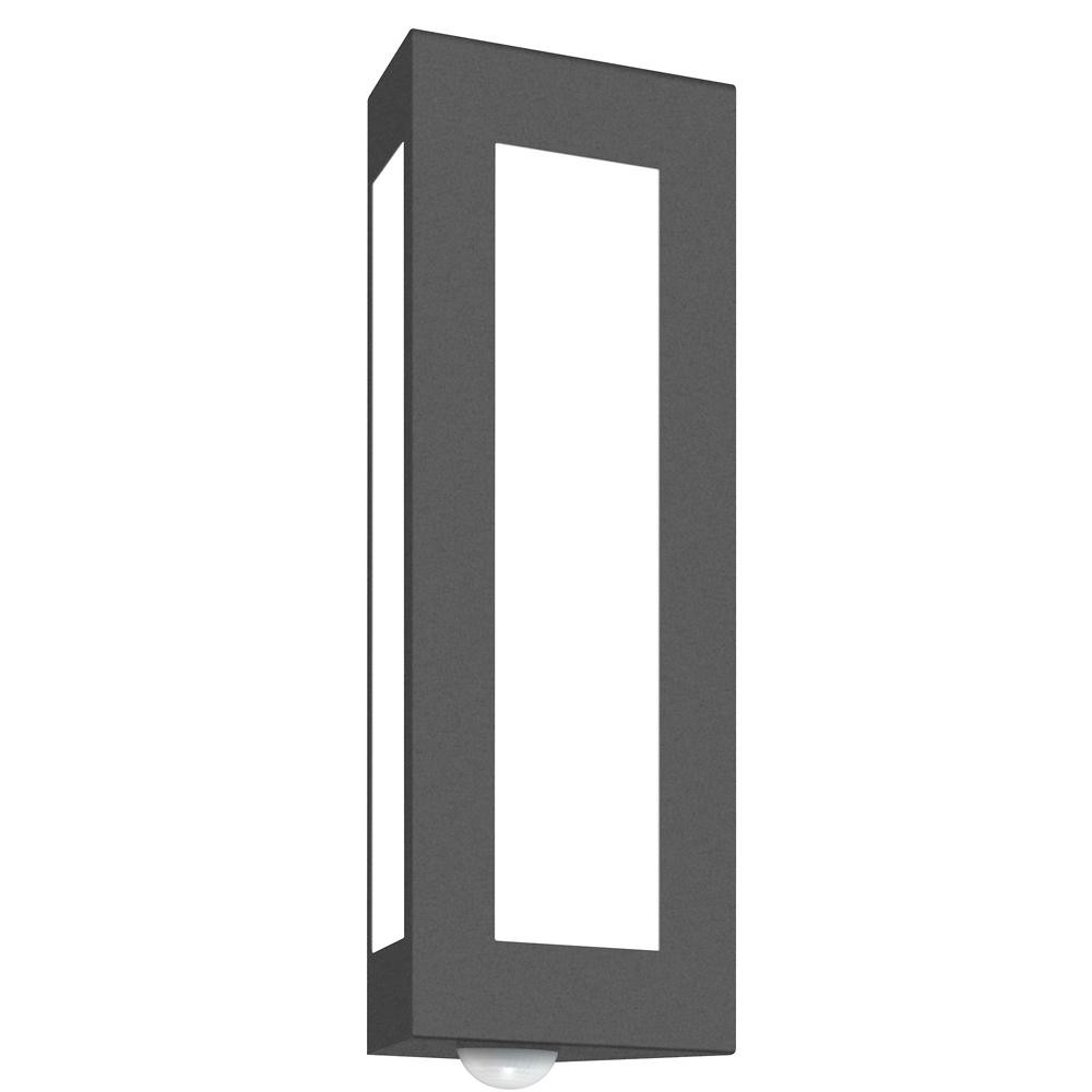 Outdoor wall luminaire TRAPEZ with motion sensor, IP44, E27, stainless steel / opal glass, anthracite