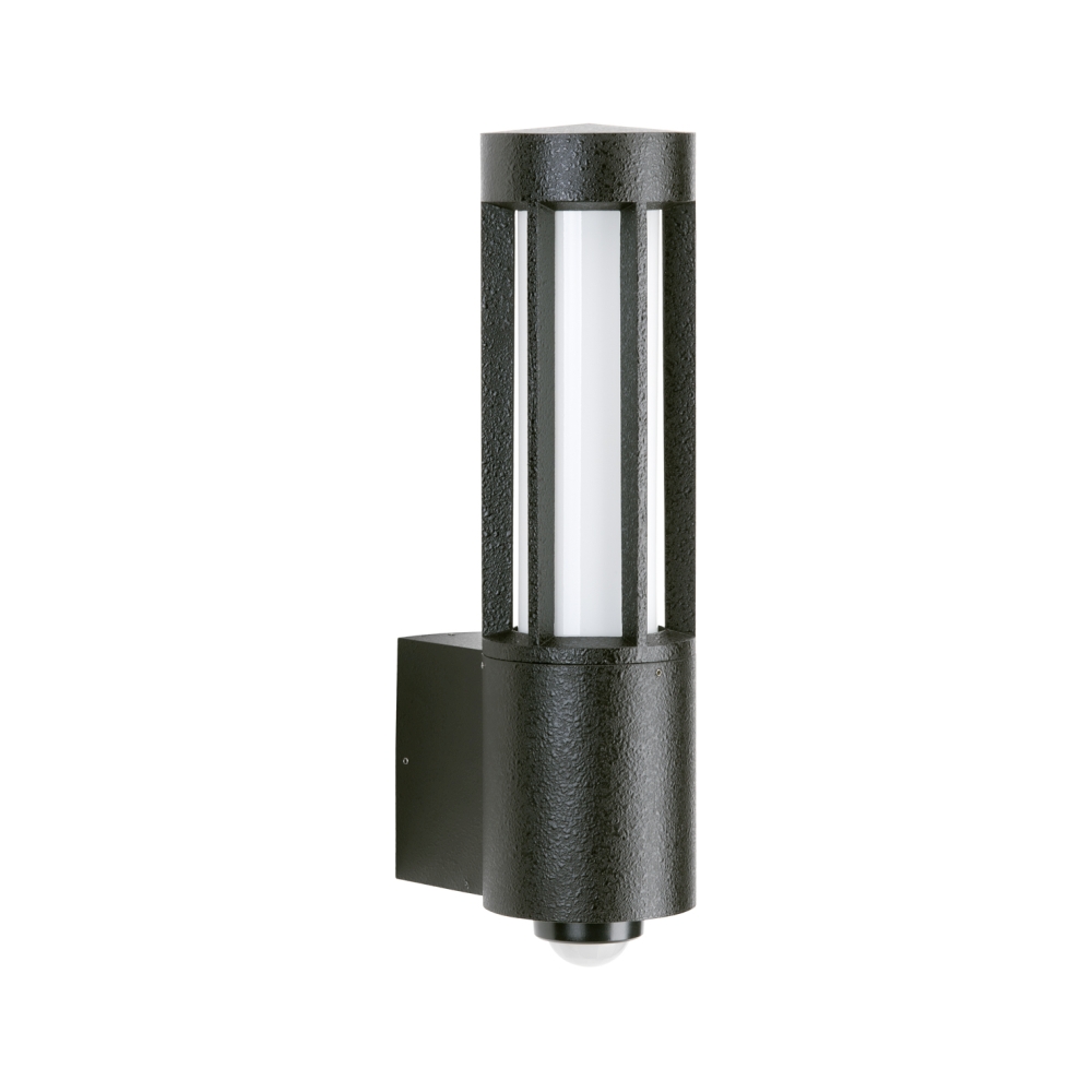 The outdoor wall light Type No. 0215 is equipped with a motion sensor of Type No. 0221 to ensure automatic lighting when motion is detected. The light has an IP protection rating of 44, which protects it from splashing water and solid foreign objects. Thanks to the symmetrical light distribution, it provides uniform lighting in outdoor areas.