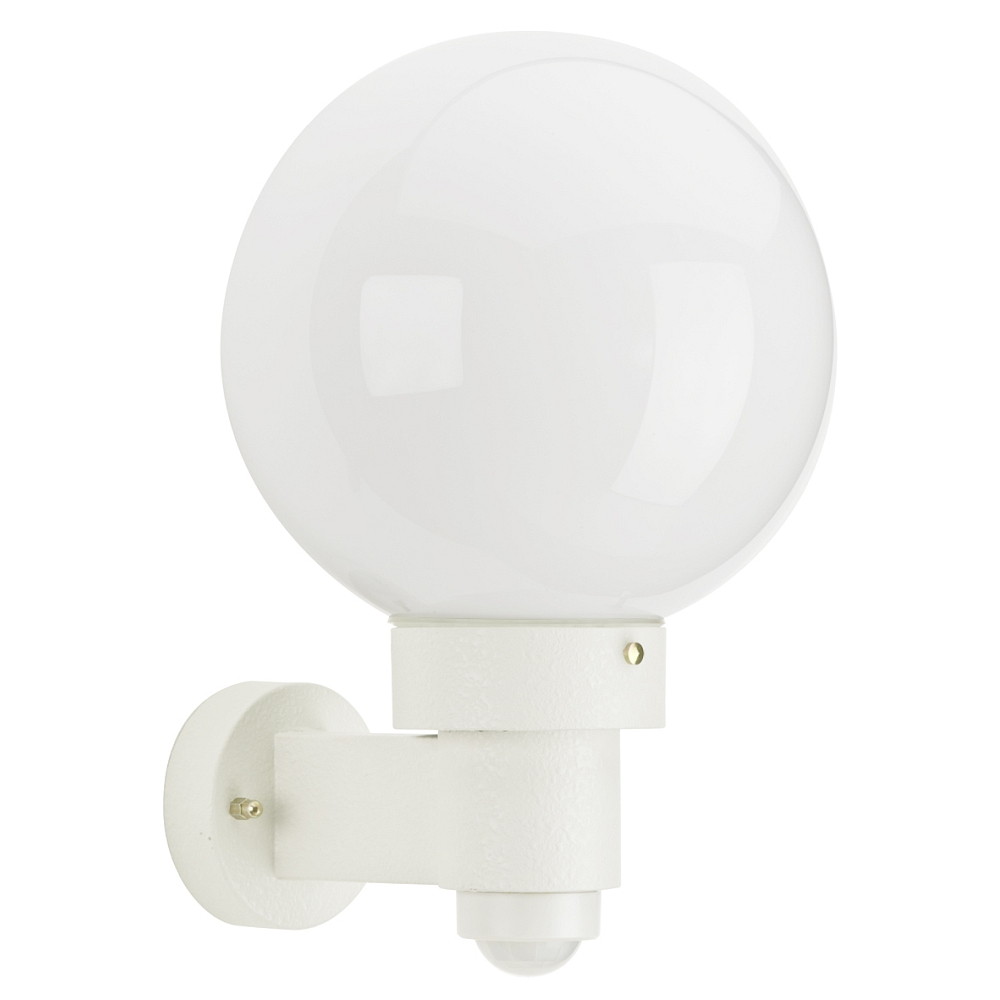 Outdoor Wall luminaire Type No. 0257 with motion sensor, with opal glass ball Ø 25cm, E27, white