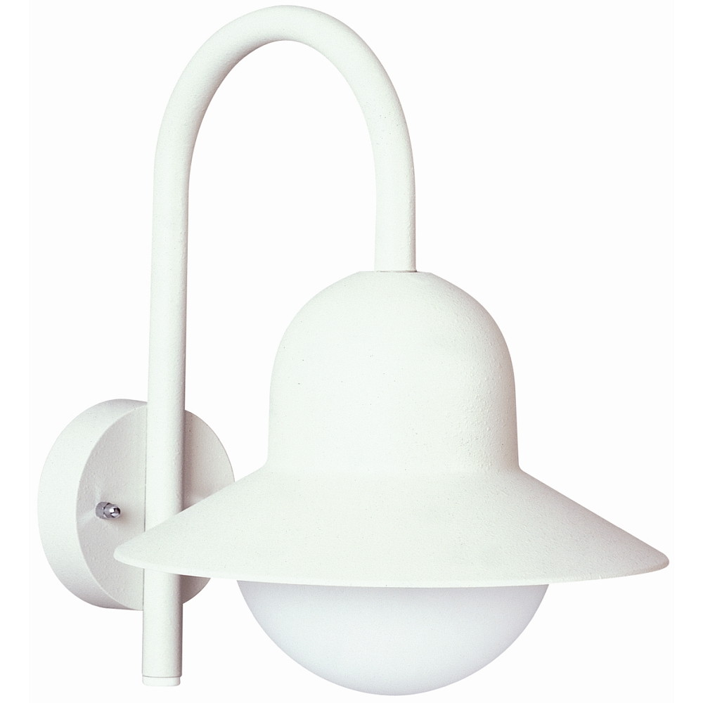 Outdoor Wall luminaire Type No. 0662, with bow arm, IP44, E27 QA55 max. 57W, cast alu / opal glass, white