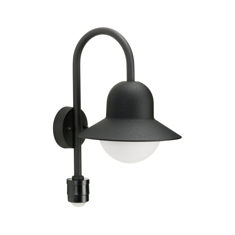 Outdoor Wall luminaire Type No. 0662 with motion sensor (Type No. 0661), IP44, E27 QA55 57W, cast alu opal glass, black