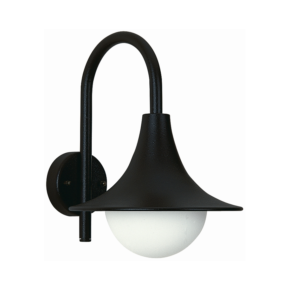 Outdoor Wall luminaire Type No. 0669, with bow arm, IP44, E27 QA55 max. 57W, cast alu / opal glass, black matt