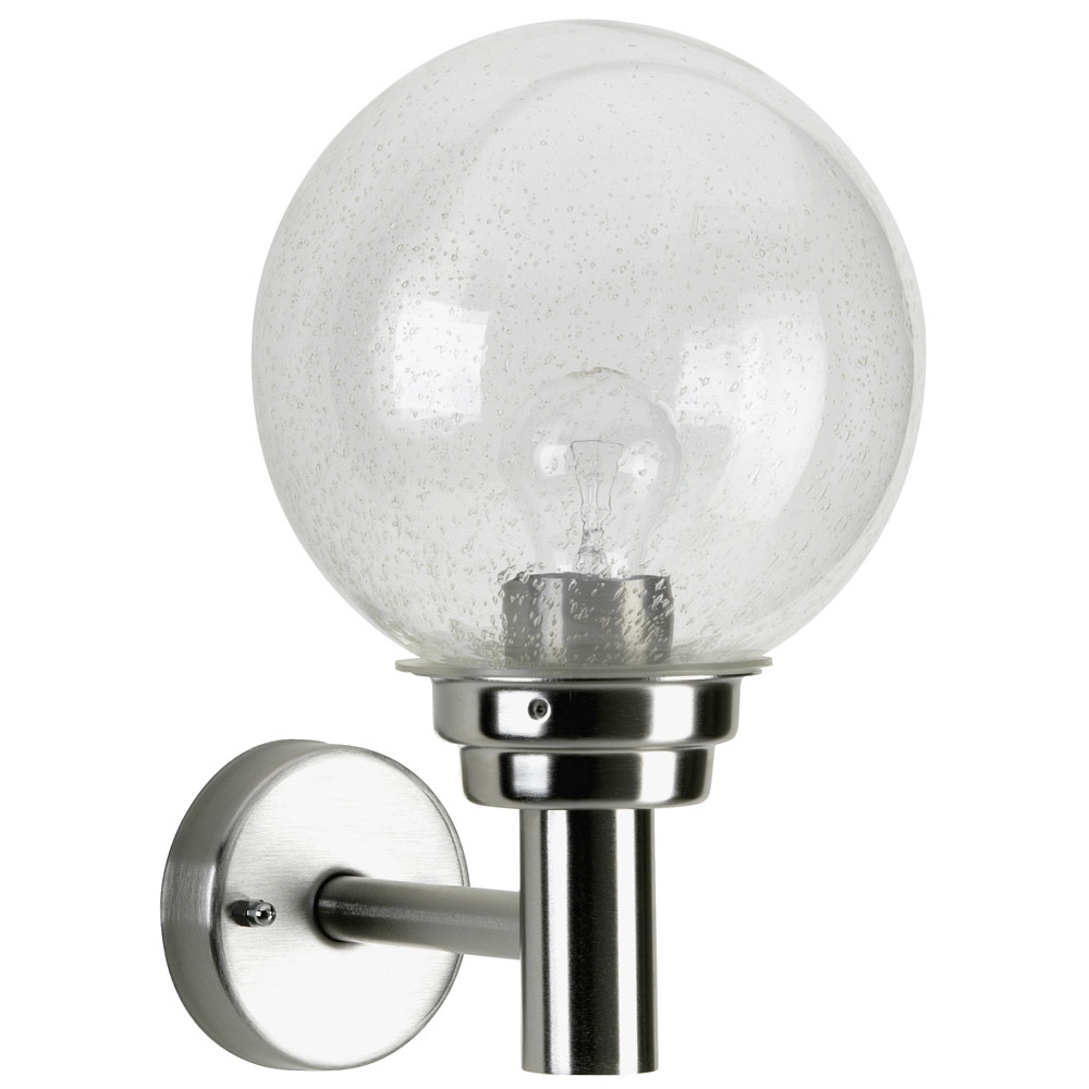 Outdoor Wall luminaire with ball shade Ø 20cm, IP44, E27 QA55 max. 57W, stainless steel polished, Type No. 0226 glass clear