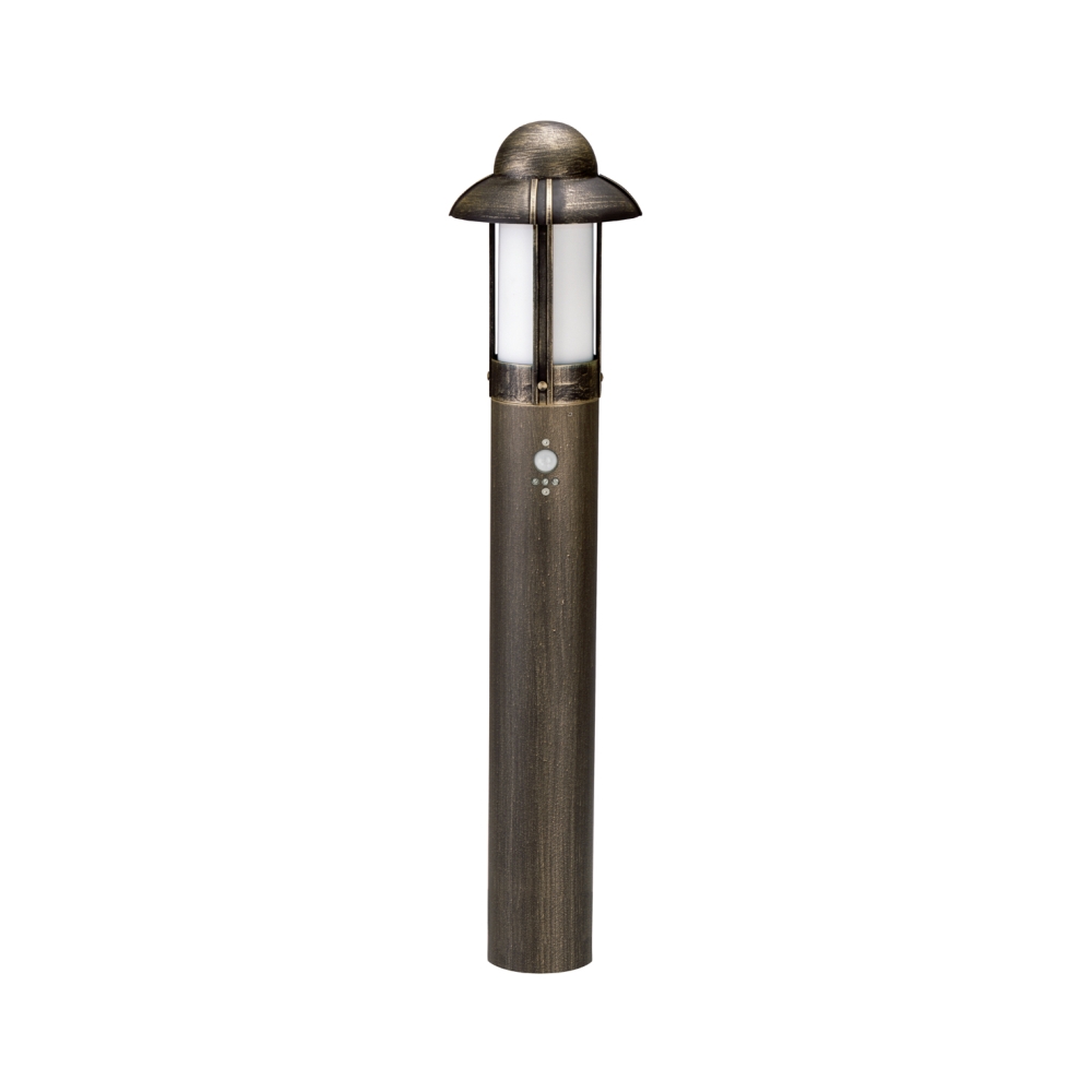 Path light Country style Night watchman Type No. 2025 with motion sensor, IP44, 90cm, E27, cast alu / opal, brown brass