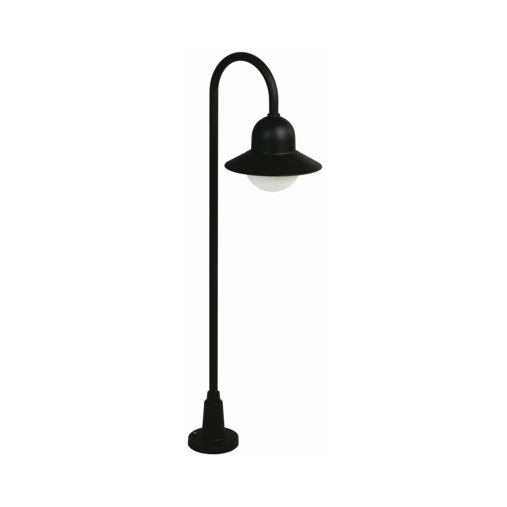 The path light Type No. 2005 is an elegant outdoor light that is both functional and aesthetically pleasing. With a height of 120 cm and a shade diameter of 27 cm, it provides pleasant lighting for paths, driveways, or gardens. The light is made of high-quality aluminum casting and opal glass and has a classic round shape in black.