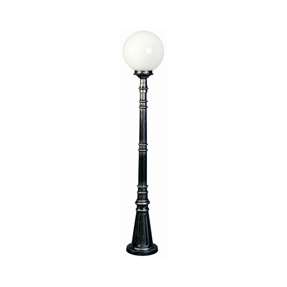 Path light Type No. 2014 with ball shade Ø 25cm, IP44, height 134cm, E27 QA55 max. 57W, cast alu / Opal glass, black-silver