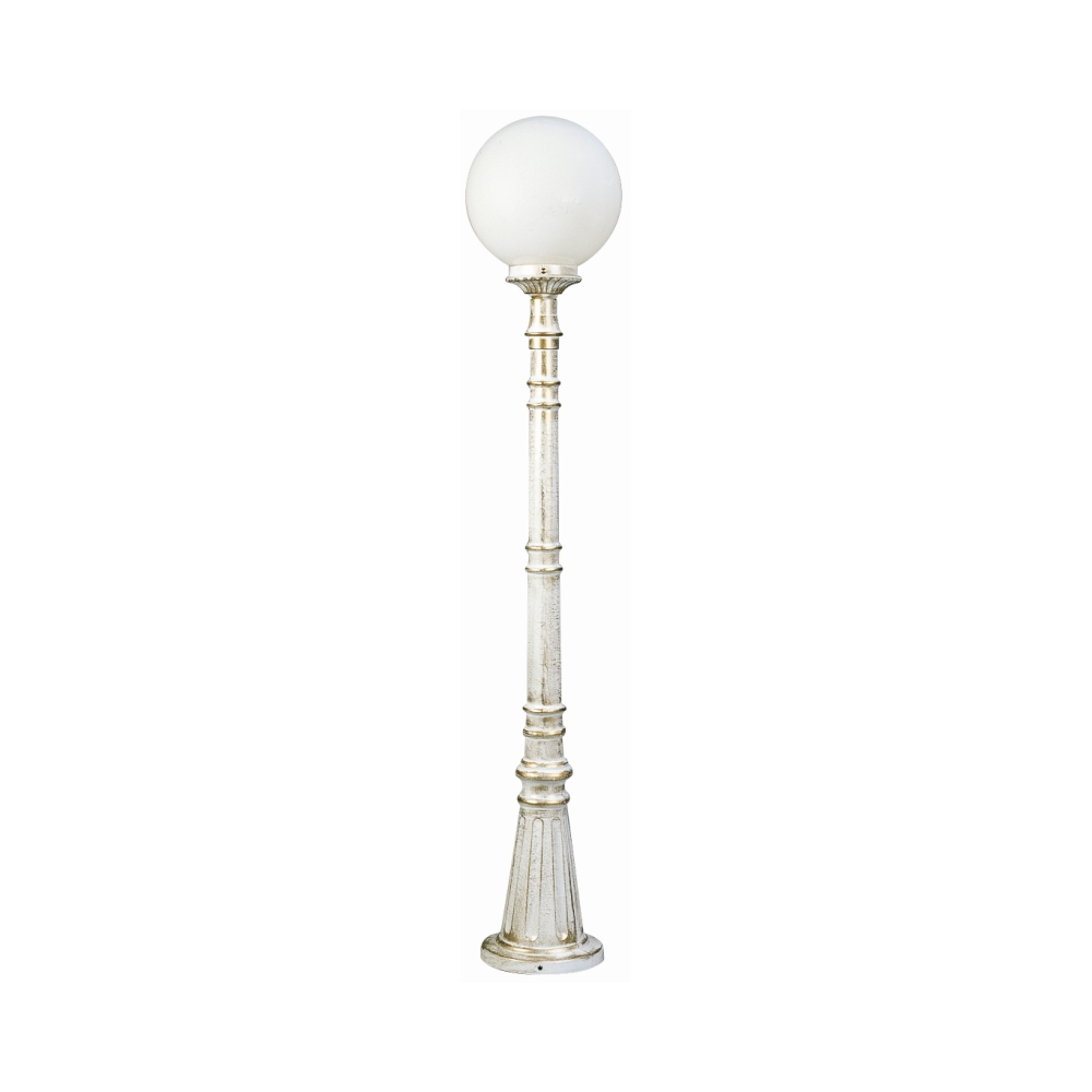 Path light Type No. 2014 with ball shade Ø 25cm, IP44, height 134cm, E27 QA55 max. 57W, cast alu / opal glass, white-gold