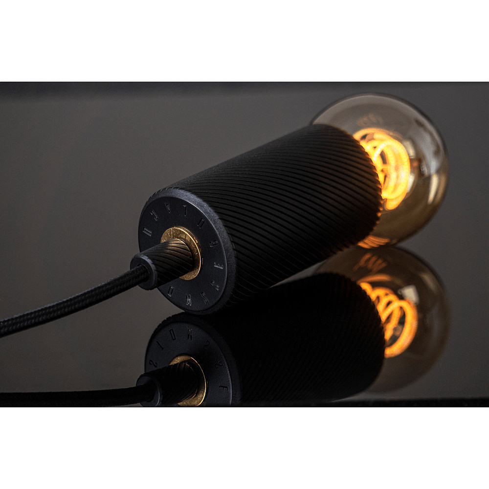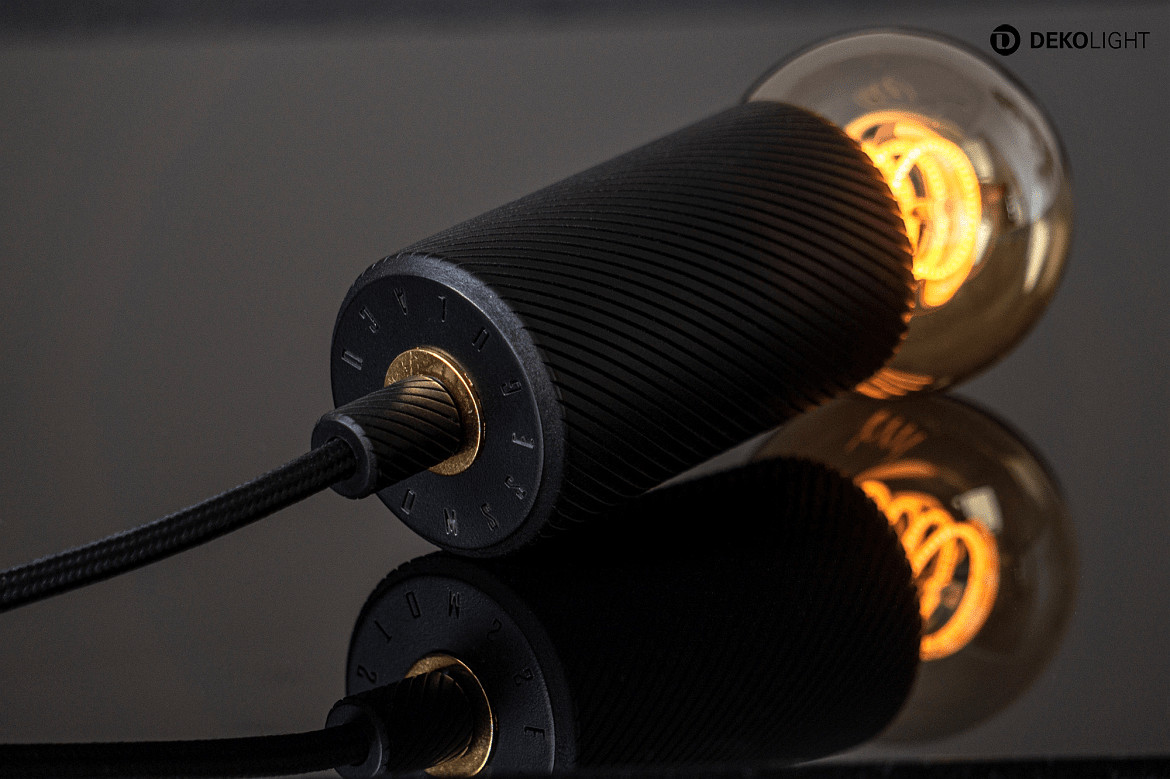 The pendant light ALIX WAVE from Segula impresses with its puristic design and high-quality surface optics. It is made of black metal and features a soft textile cable. The socket has a decorative diagonal groove design that creates a unique look.