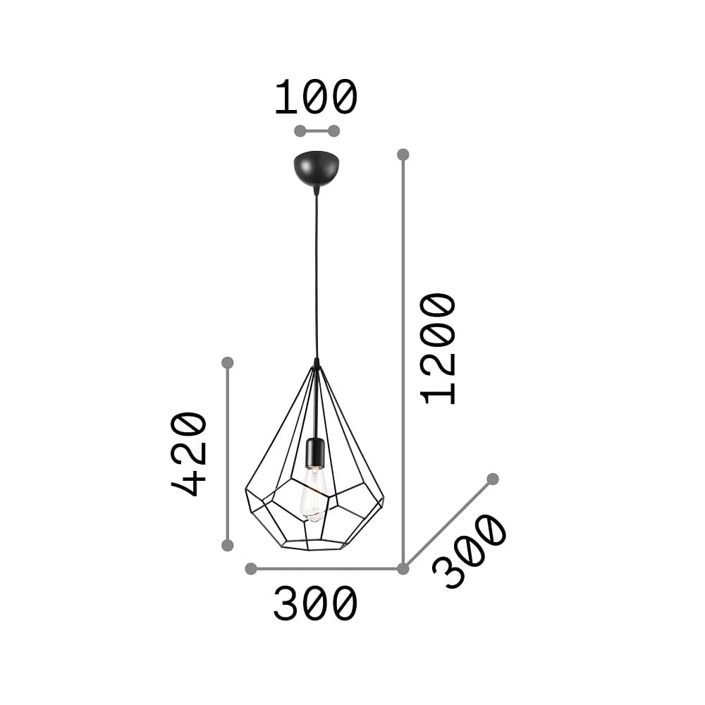 Pendant luminaire AMPOLLA 3, DIAMOND long, shade Ø 30cm / H 42cm, E27, adjustable height, black