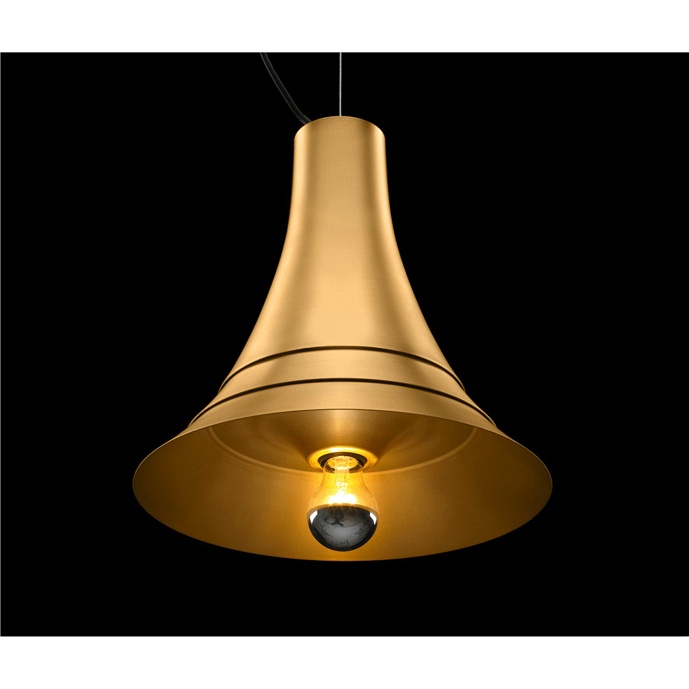 The pendant light is made of high-quality aluminum and steel, and is finished in an elegant brushed brass finish. This not only gives it a noble appearance, but also ensures durability.