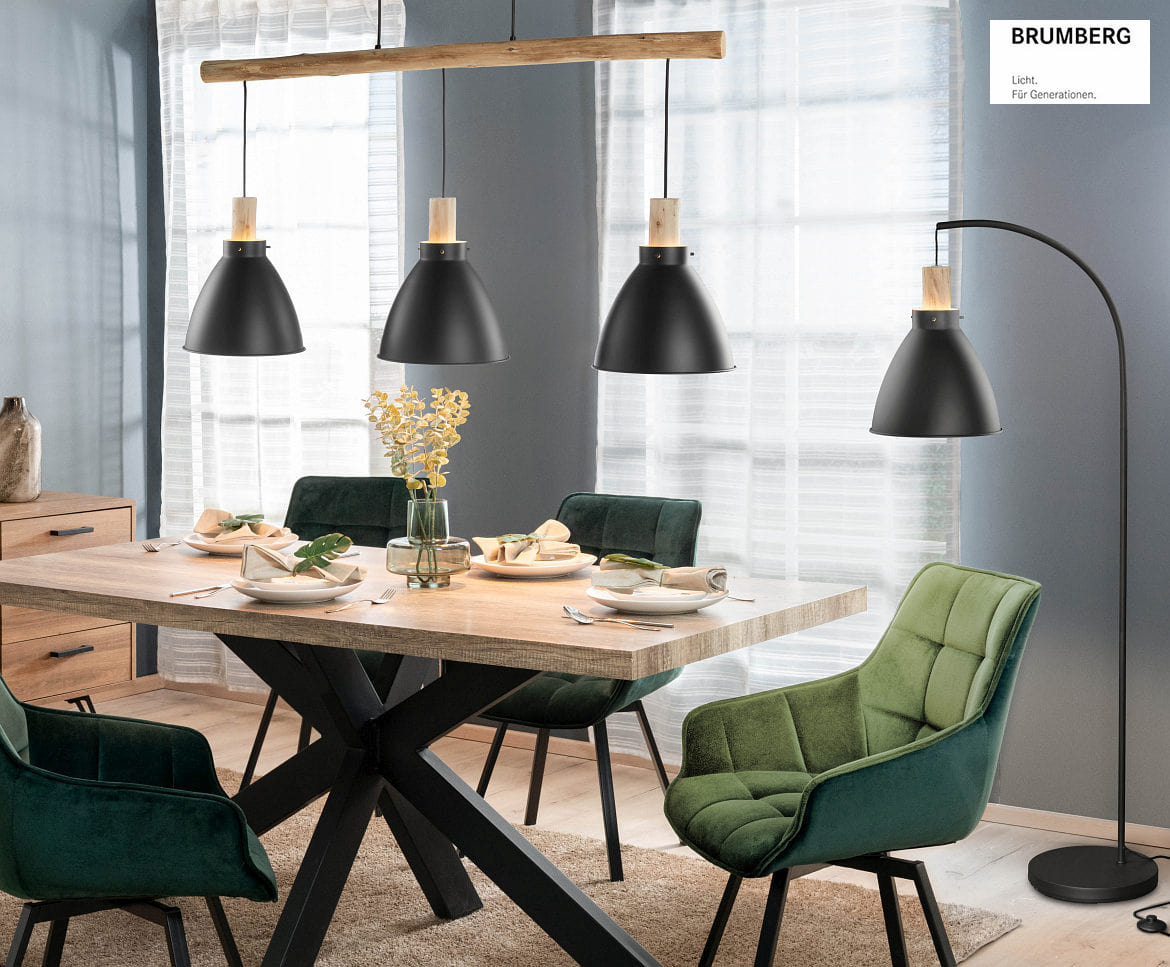 The pendant light BRENTHIS impresses with its modern design and high-quality craftsmanship. With a width of 123cm, it is a real eye-catcher in any room. The steel/wood material in structured black gives the light a noble look that fits various interior styles.