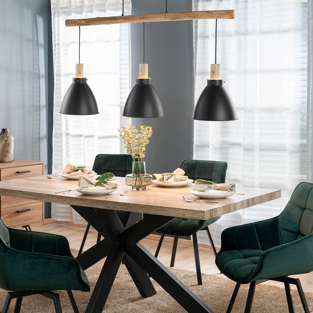 pendant luminaire BRENTHIS 3 flames, large E27 IP20, wood, black dimmable