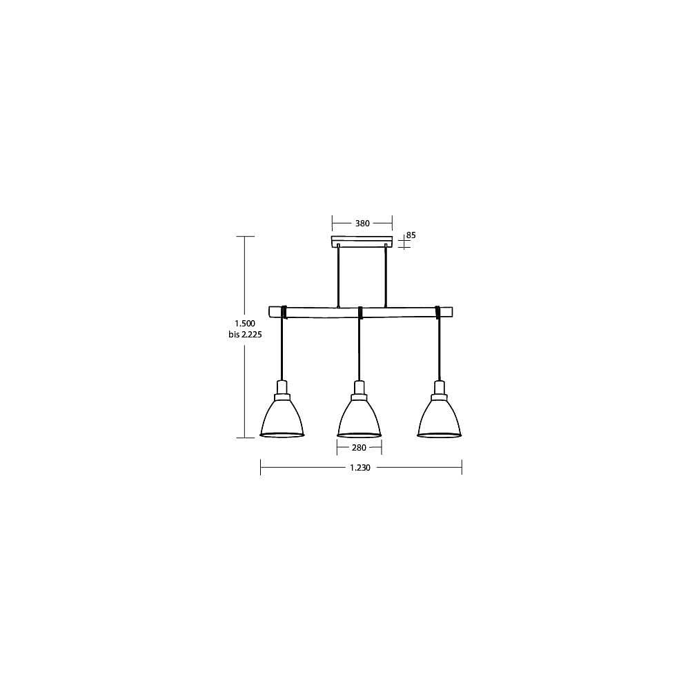 The pendant light has 3 E27 sockets and can therefore be operated with dimmable light sources. The overall dimensions are 123x28x150 cm, with the shade having a diameter of 28 cm. The canopy measures 38x8.5 cm and the light itself weighs 4.769kg. Thanks to its adjustable height, the pendant light can be customized to suit individual needs.