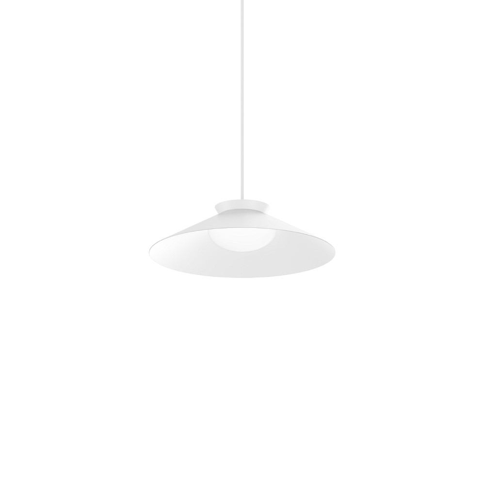 The pendant light has a diameter of 35 cm and a height of 400 cm. It features an efficient COB LED module with a front lens, allowing for a homogeneous and soft emission in warm white light. With a power consumption of 15W and a light output of 710lm, it offers very good color rendering with a color rendering index of >90Ra.