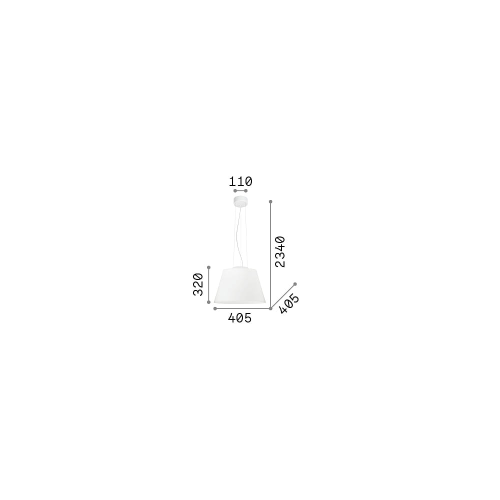 The pendant light CYLINDER SP1 D40 by Ideal Lux is an elegant lighting solution for any room. With a diameter of 40 cm and a height of 32 cm, this light fits perfectly in any space and creates a pleasant atmosphere.