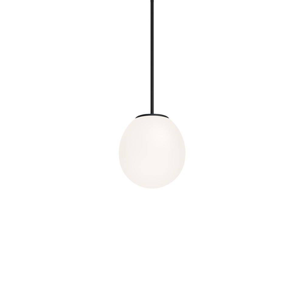 The suspended pendant light DRO SUSPENDED 1.0 is a high-quality design light from Wever & Ducré. It features an oval diffuser made of Italian mouth-blown opal glass and a canopy made of matte black aluminum die-casting. The textile-covered cable ensures an attractive appearance.