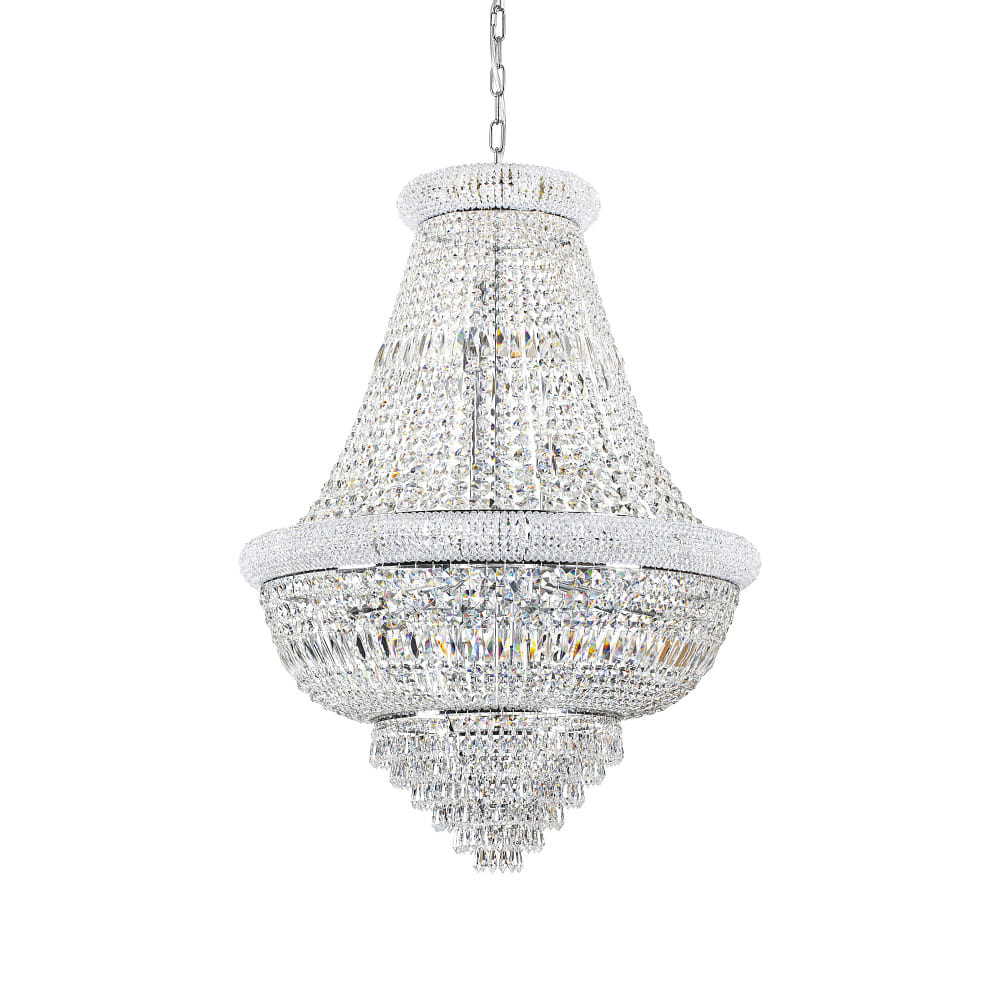 Pendant luminaire DUBAI, 24 flames, Ø 80cm, E14, metal / refined chrystal, chrome