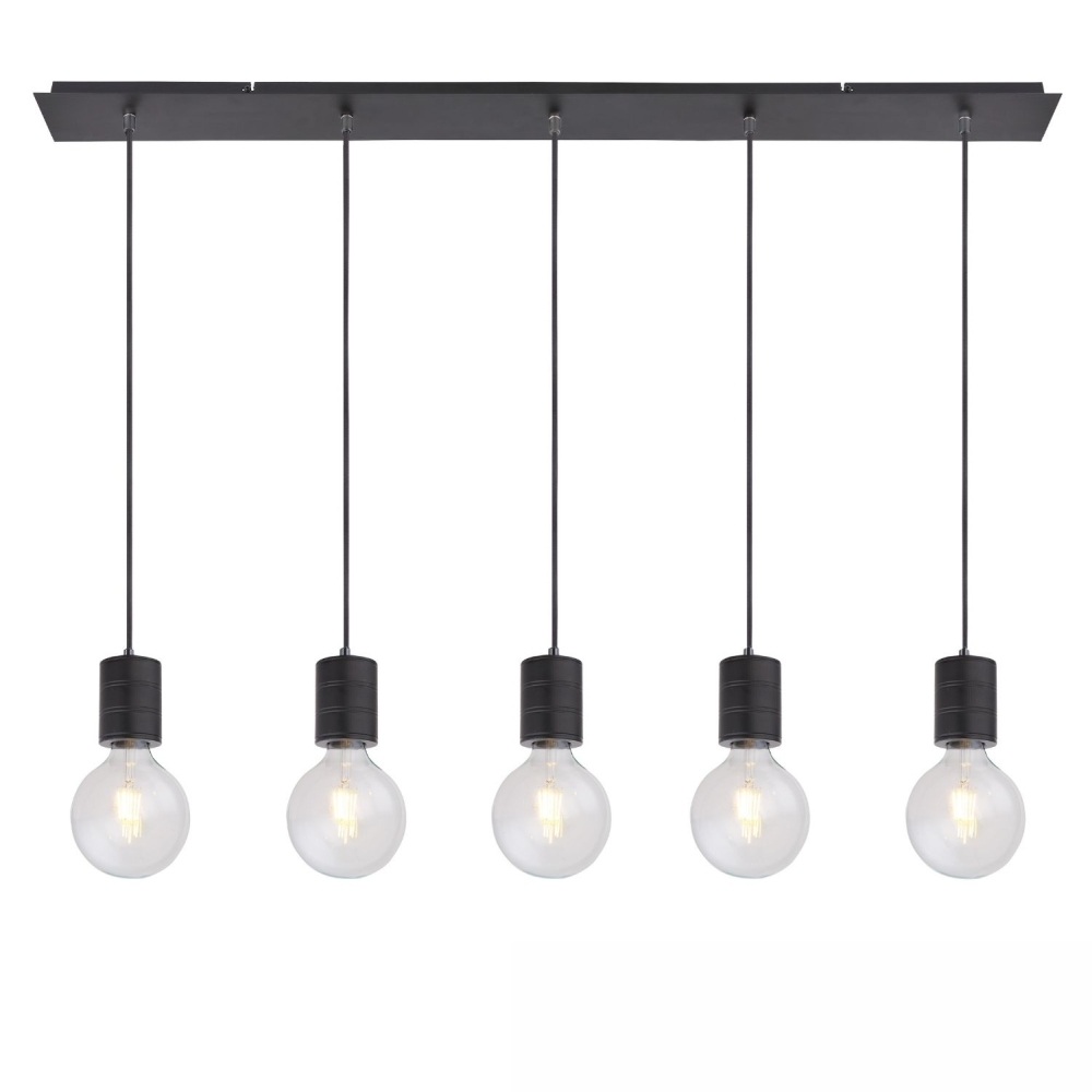 pendant luminaire E27 SURFACE 5 flames, long, with canopy E27 IP20, black matt dimmable