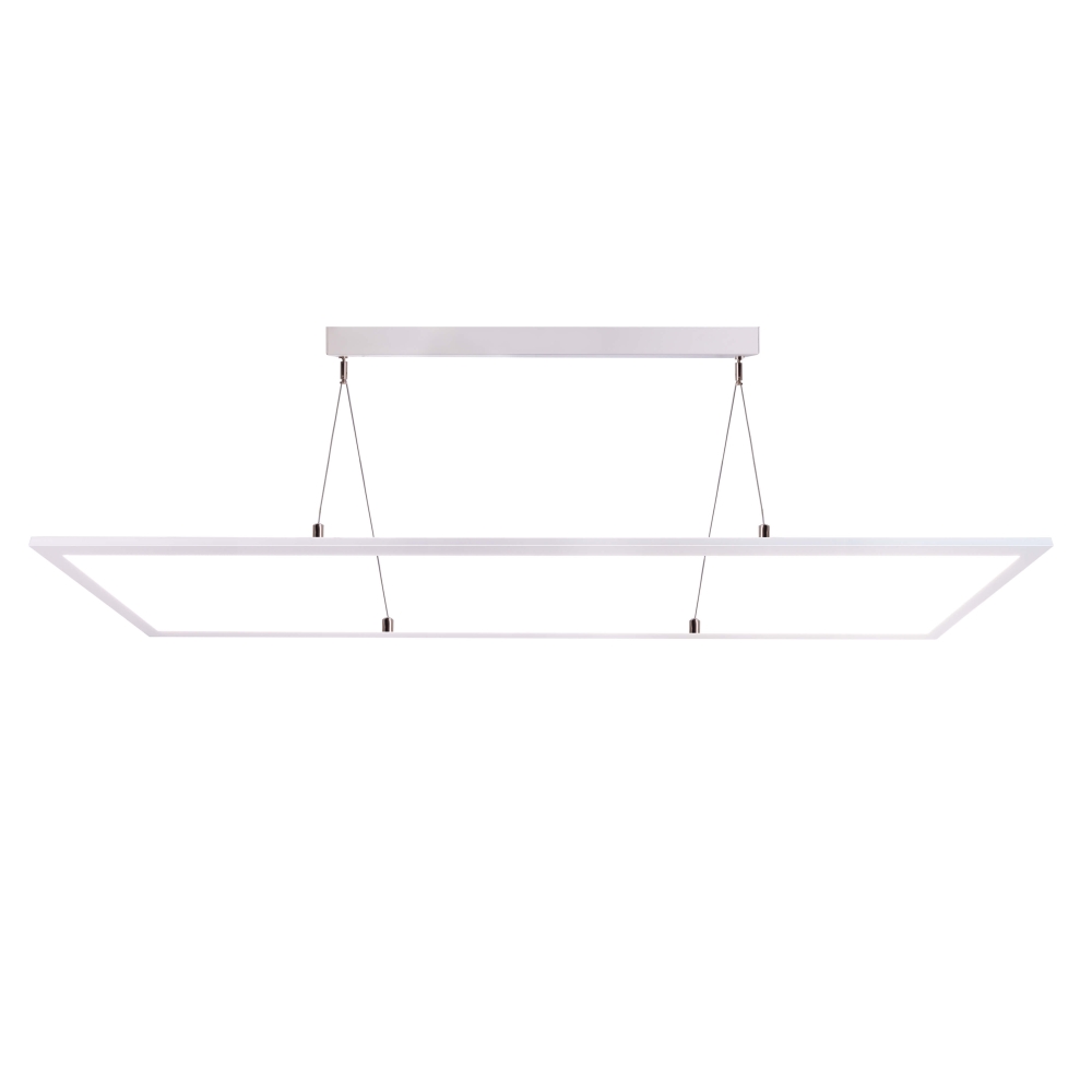 The LED EVENT-PANEL TRANSPARENT RGBNW is a square pendant light measuring 119.5 x 29.5 x 1.38 cm. With a power consumption of 63W and a luminous intensity of 550cd, this light produces bright light with a luminous flux of 4265lm. The light is distributed both directly and indirectly, creating fascinating light effects in your spaces.