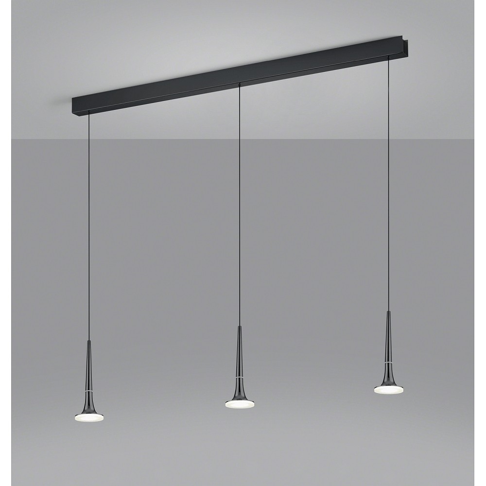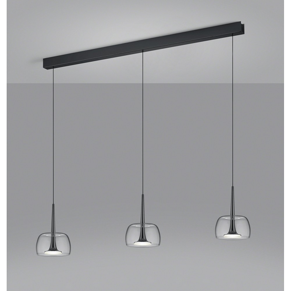 pendant luminaire FLUTE 3 flames IP20, satined, black chrome dimmable