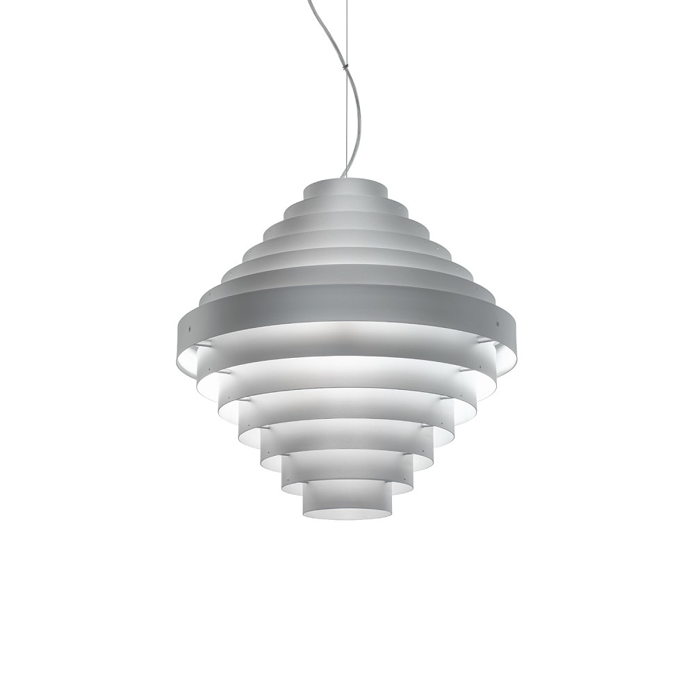 The pendant light has a stylish silver aluminum shade in a round shape. With a weight of 8.5 kg and a pendant length of 200 cm (adjustable), it is easy to install and customize to your needs.