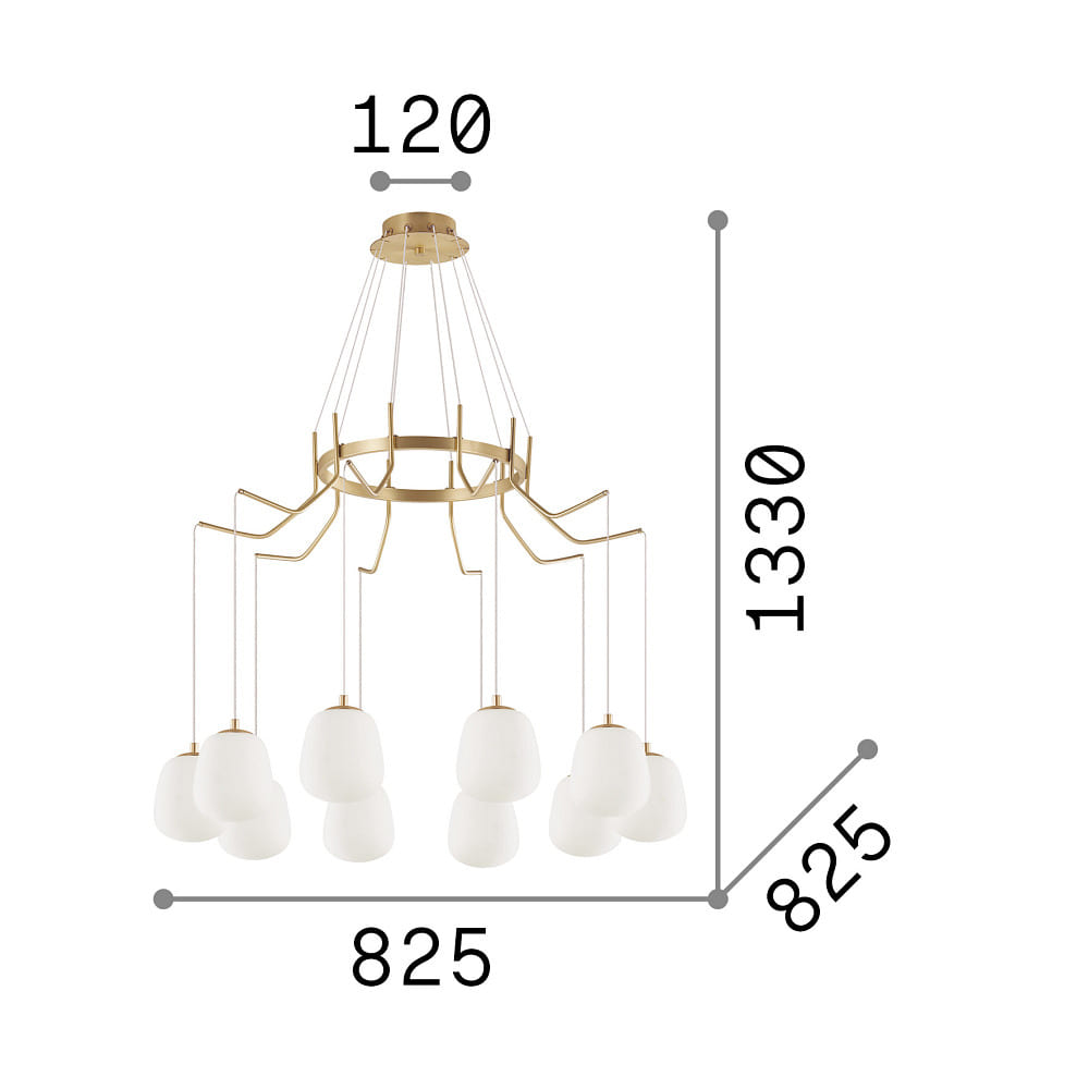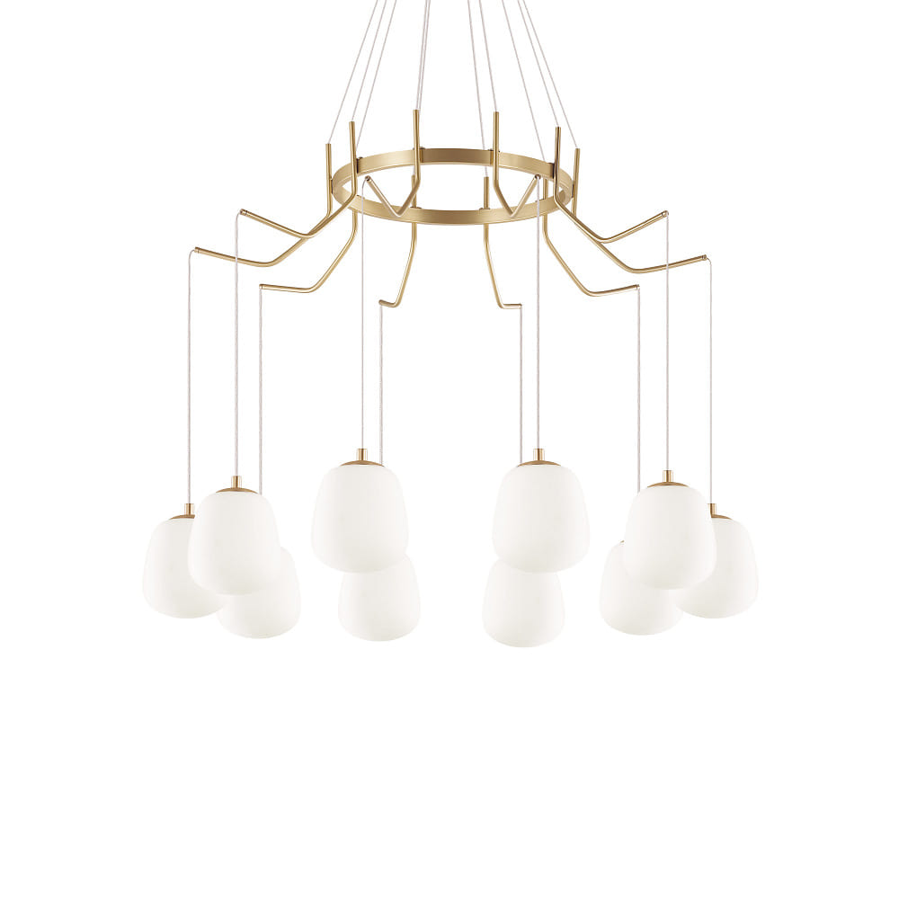 Pendant luminaire KAROUSEL, 10 flames, Ø 82.5cm, incl. G9 3.2W 3000K, satined brass / white