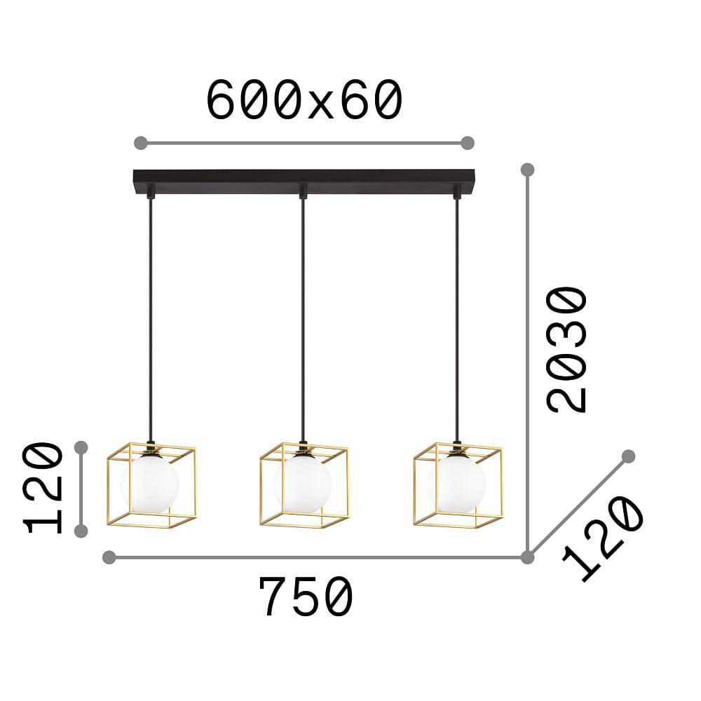 Ideal Lux pendant luminaire LINGOTTO SP3 SINGLE 3 flames, 3-fold, adjustable G9 IP20, black matt, satined brass