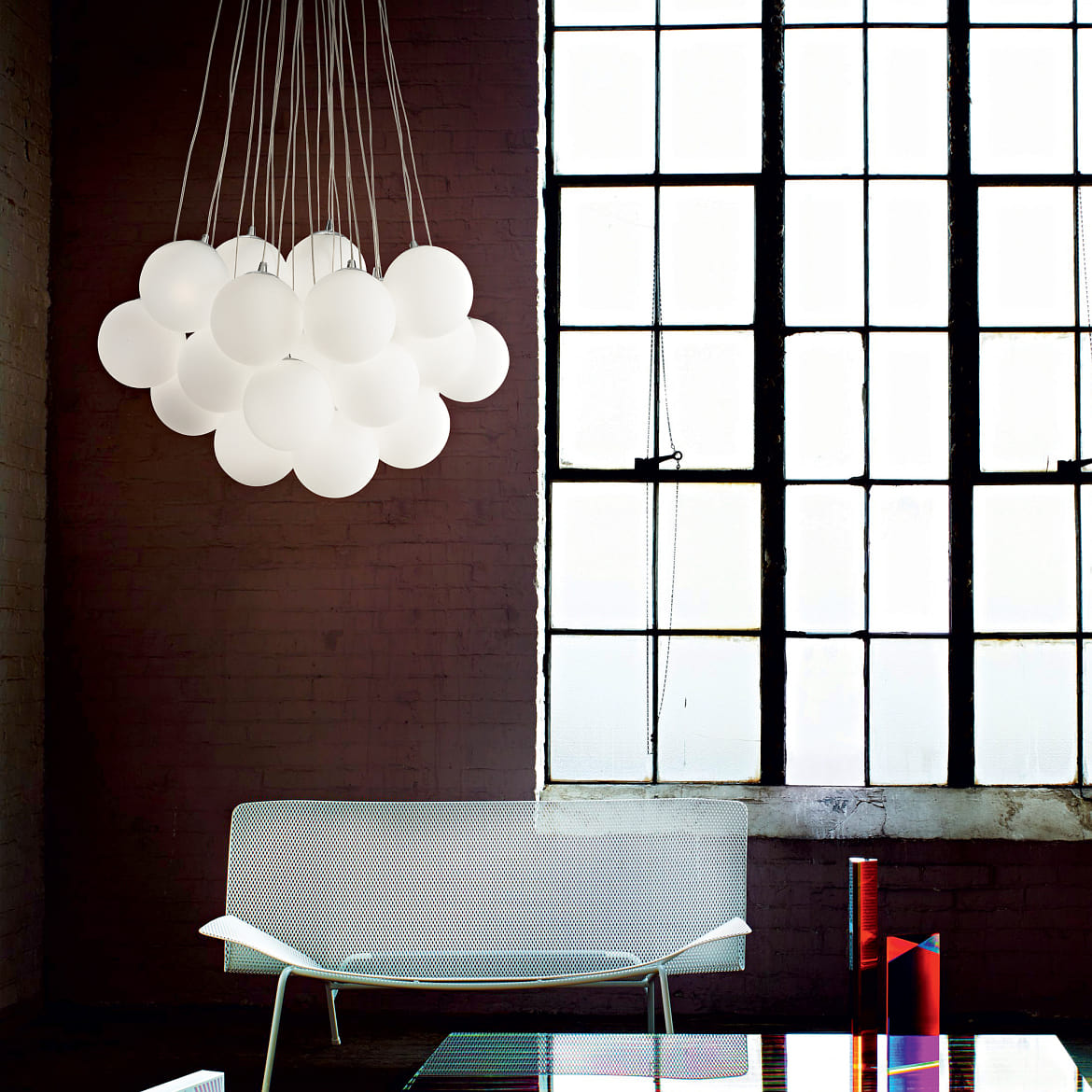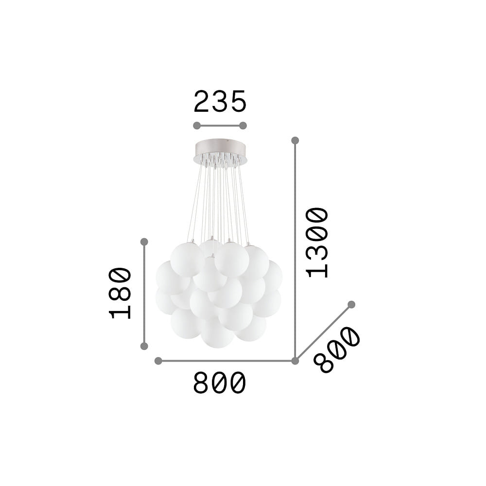 Pendant luminaire MAPA PLUS, 22 flames, Ø 80cm, E14, metal / white etched glass