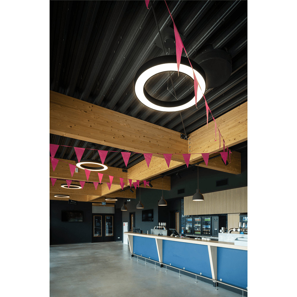 The LED pendant light MEDO® RING 90 PHASE is a professional solution for indoor lighting. With a diameter of 90 cm, it is ideal for uniform illumination of large areas or as an island light in different areas.