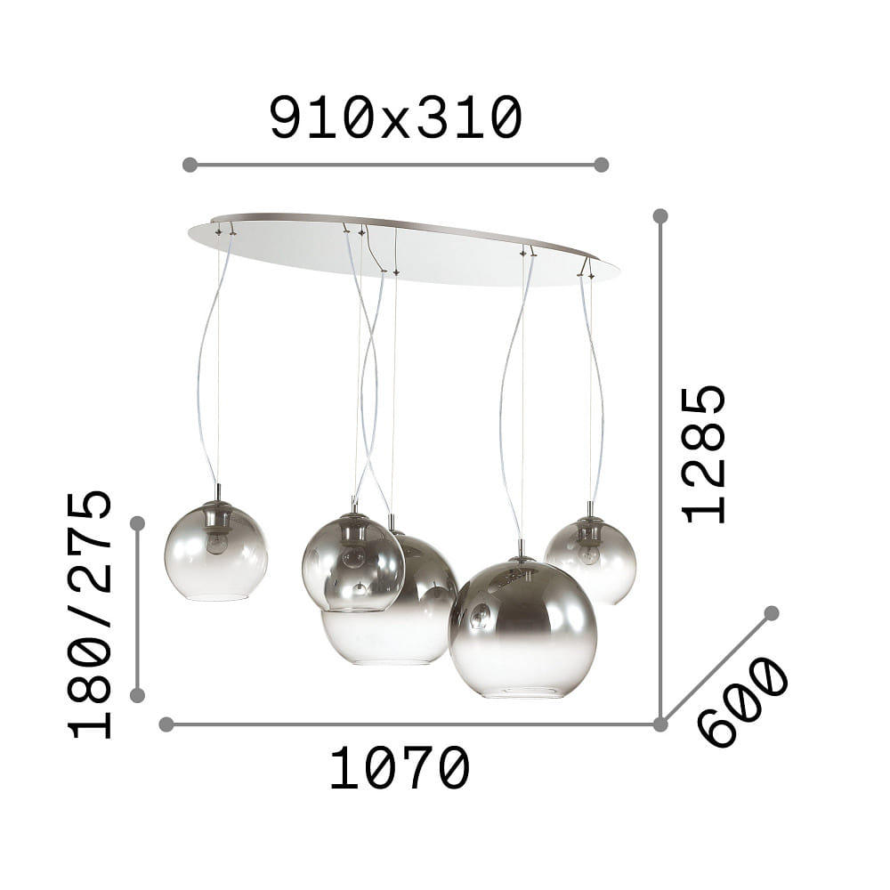 Ideal Lux Pendant luminaire NEMO PLUS, 5 flames, 107 x 60cm, E27 Pendant luminaire NEMO PLUS, 5 flames, 107 x 60cm, E27 Pendant luminaire NEMO PLUS, 5 flames, 107 x 60cm, E27