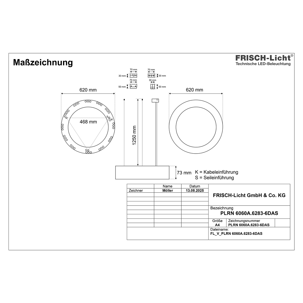 Frisch-Licht pendant luminaire Ø 62CM CCT Switch, direct / indirect, UGR < 19, multipower, ring shape IP40, black dimmable pendant luminaire Ø 62CM CCT Switch, direct / indirect, UGR < 19, multipower, ring shape IP40, black dimmable