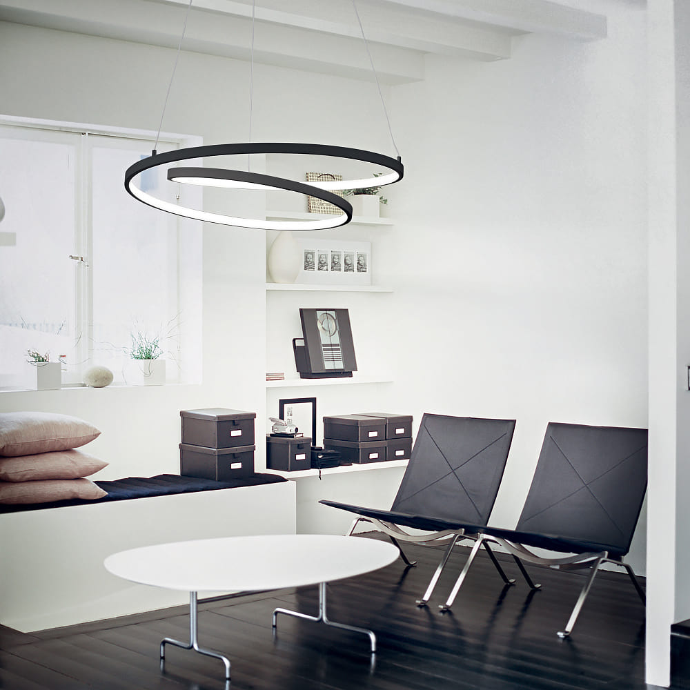 pendant luminaire OZ D60 DALI/PUSH round, DALI controllable IP20, black matt dimmable
