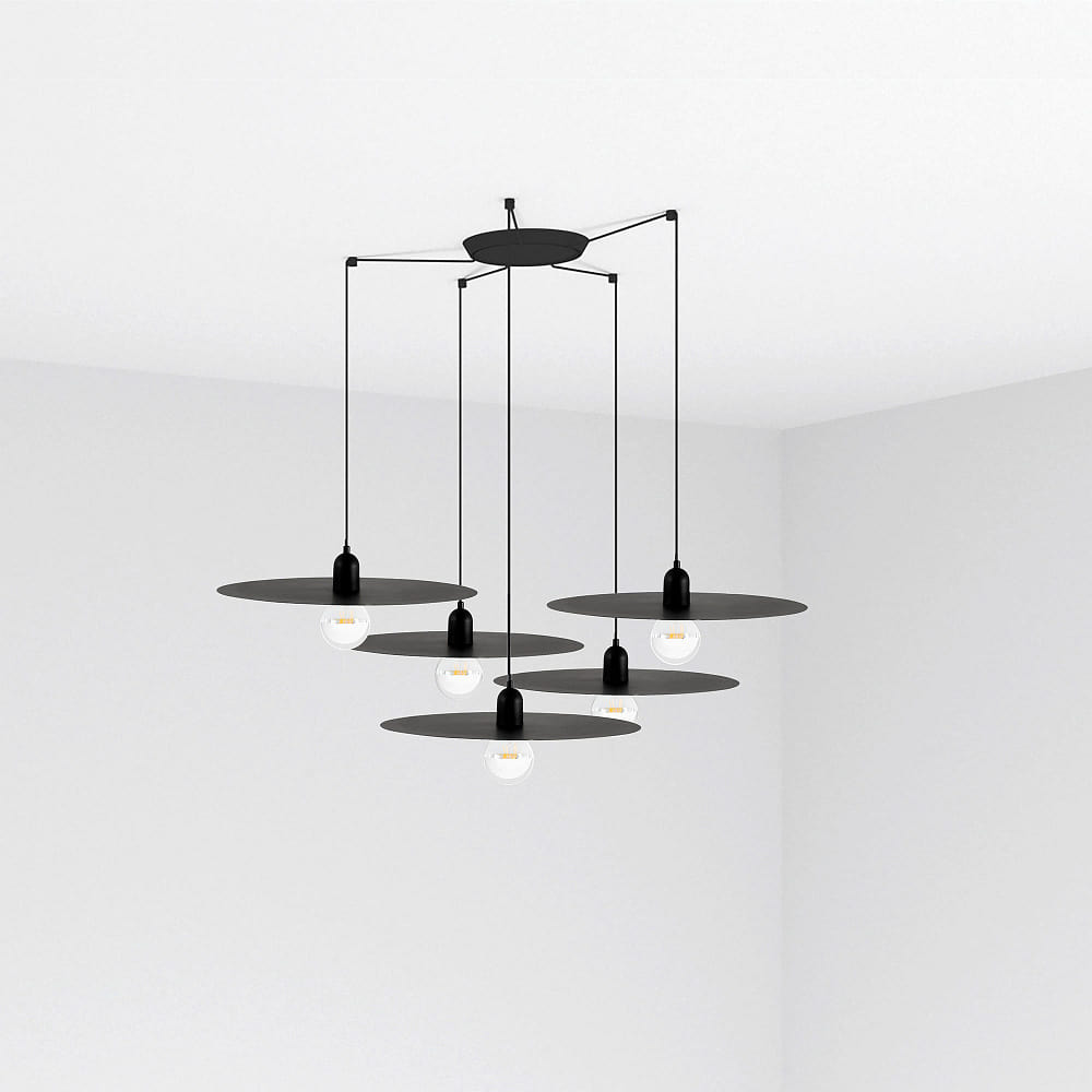 pendant luminaire PLAT 5 flames E27 IP20, black matt