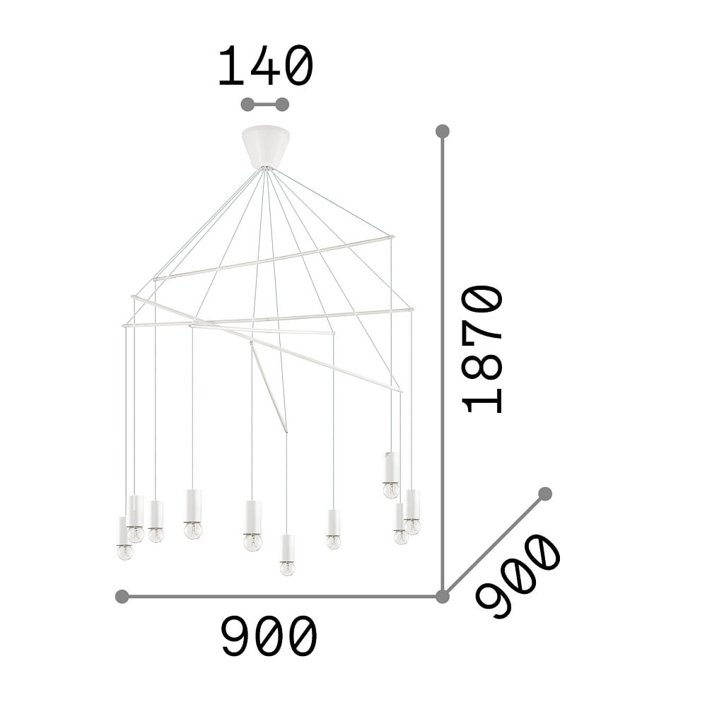 Ideal Lux Pendant luminaire POP, 10 flames, Ø 90cm, E27, adjustable height