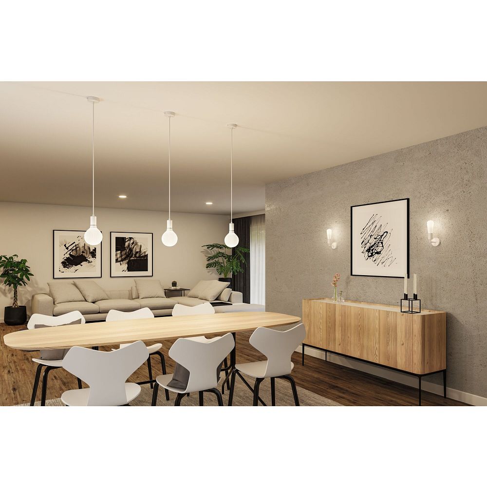 The installation of the pendant light is done via a screw clamp with a clamping connection, ensuring secure mounting. The delivery includes seals that support the protection level. The textile cable can be easily extended or stretched if needed using a hot air blower, providing additional flexibility during installation. In addition to the pendant light, a matching wall light from Paulmann is also available, completing the lighting concept.