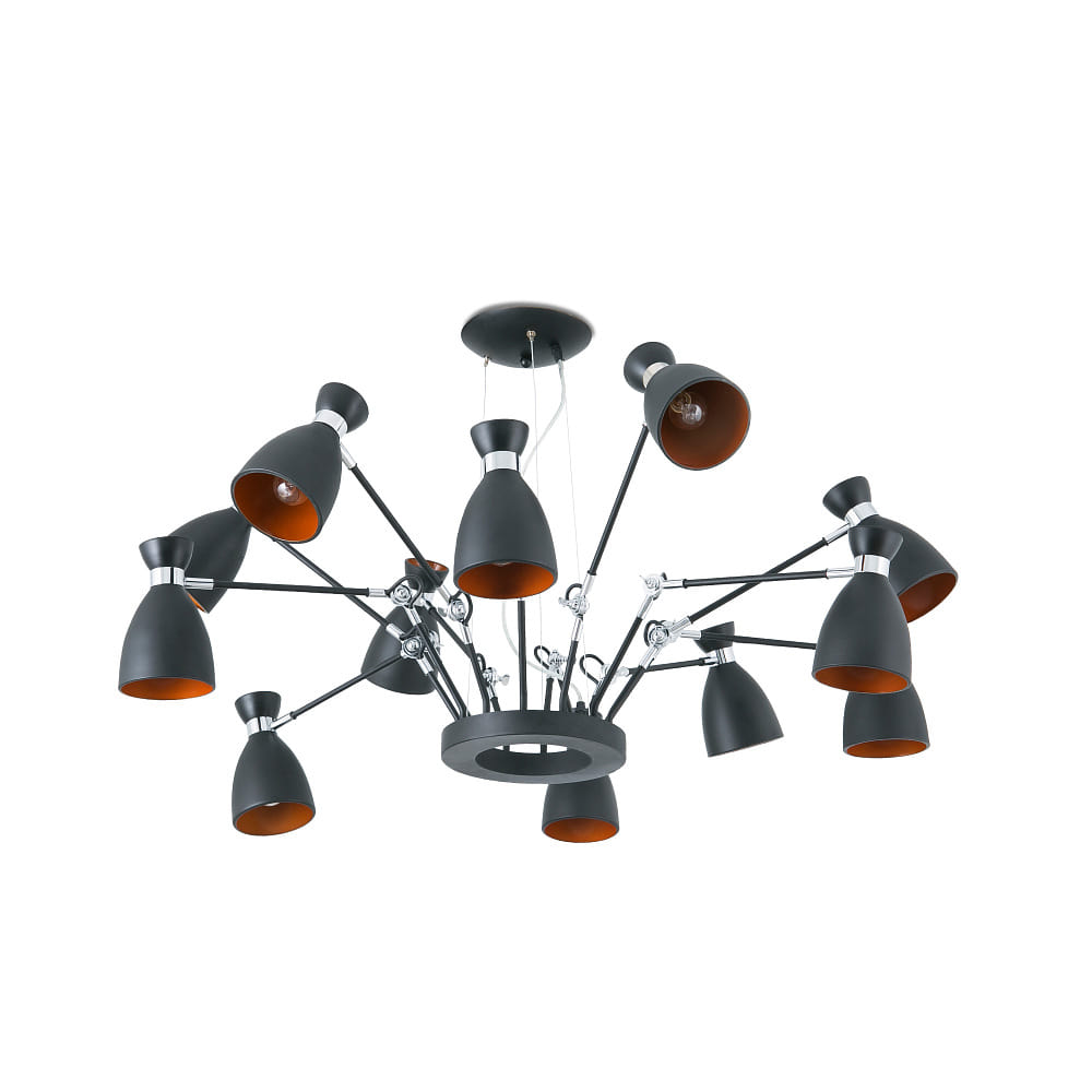 pendant luminaire RETRO 12 flames E14 IP20, copper, black matt