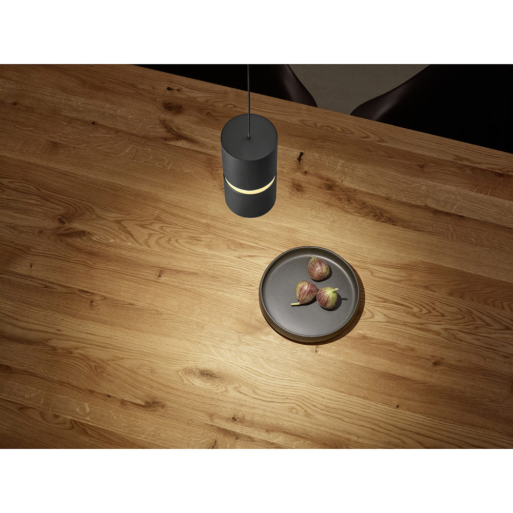 The pendant light ROK by Helestra is a minimalist, cylindrical indoor pendant light with a direct-indirect light output. With a power consumption of 10W and a light output of 1020lm, it provides an extra warm white light with a very good color rendering of CRi >90Ra.