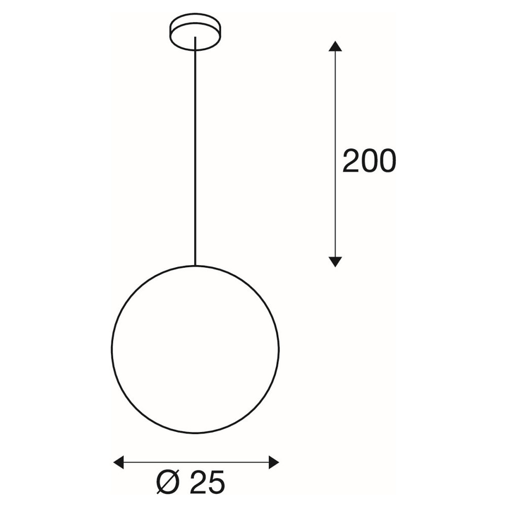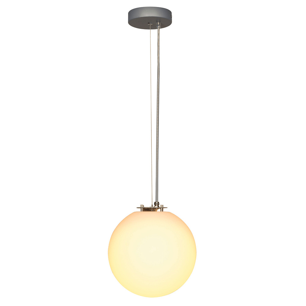The ROTOBALL 25 PD has a power consumption of 24W and is operated with an E27 light bulb (max. Ø 7cm). The spherical diffuser allows for soft all-around light emission in the room. The light is dimmable and can be directly connected to 230V. The pendant length is adjustable and standardly 200 cm.